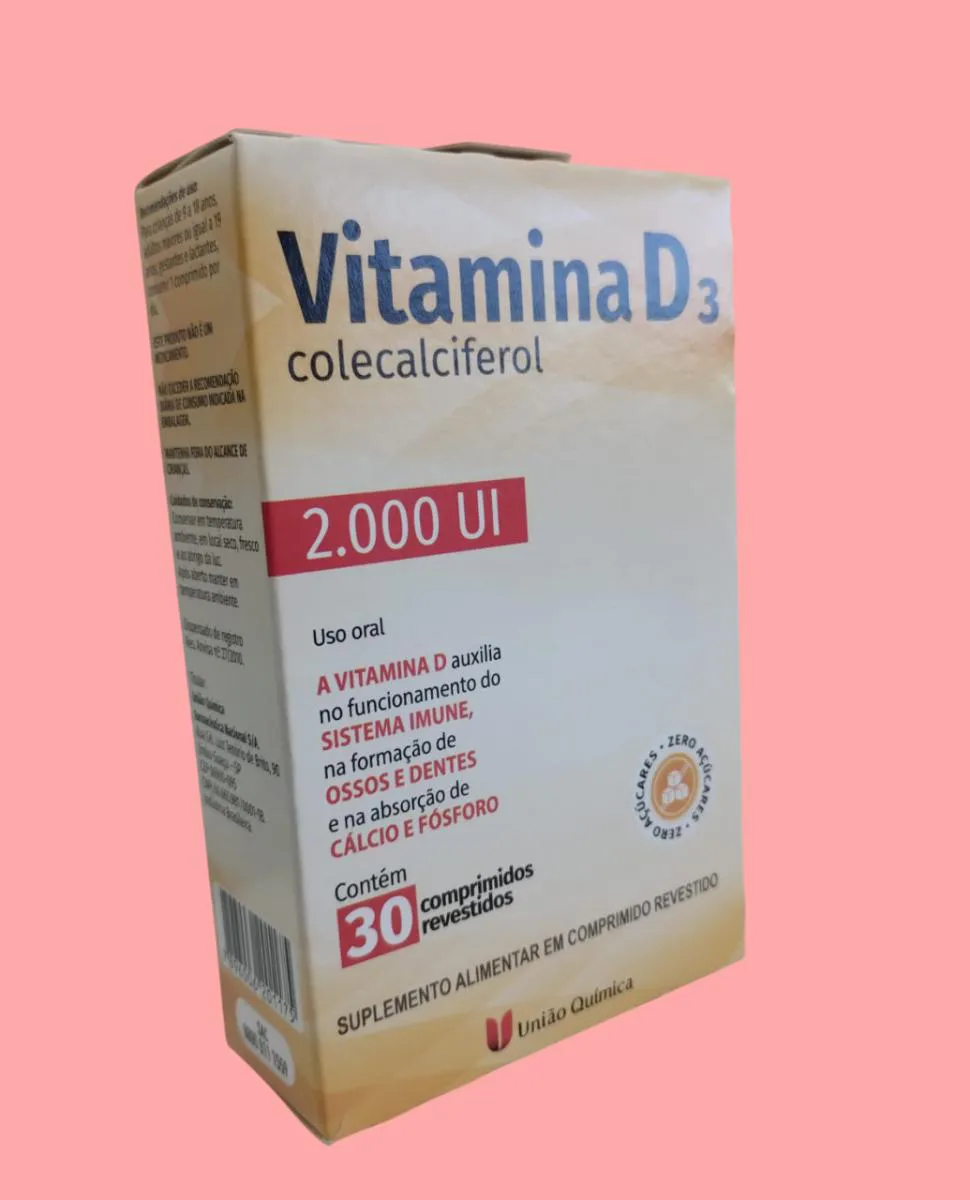 Uma nutrição equilibrada tem um papel muito importante na qualidade de vida. Com o ritmo acelerado de muitas pessoas, às vezes, é muito difícil prestar atenção a todos os requisitos que o corpo precisa para estar saudável e forte. Neste sentido, os suplementos cumprem a função de complementar a alimentação e ajudam a obter as vitaminas, minerais, proteínas e outros componentes indispensáveis para o correto funcionamento do organismo. Ingredientes: Colecalciferol; agente de massa celulose microcristalina, estabilizante croscaramelose sódica, antiumectantes: dióxido de silício e estearato de magnésio. Componentes de revestimento: Glaceantes: polietilenoglicol, talco. Mono e diglicerídeos de ácidos graxos e álcool polivinílico, corante dióxido de titânio. NÃO CONTÉM GLÚTEN.