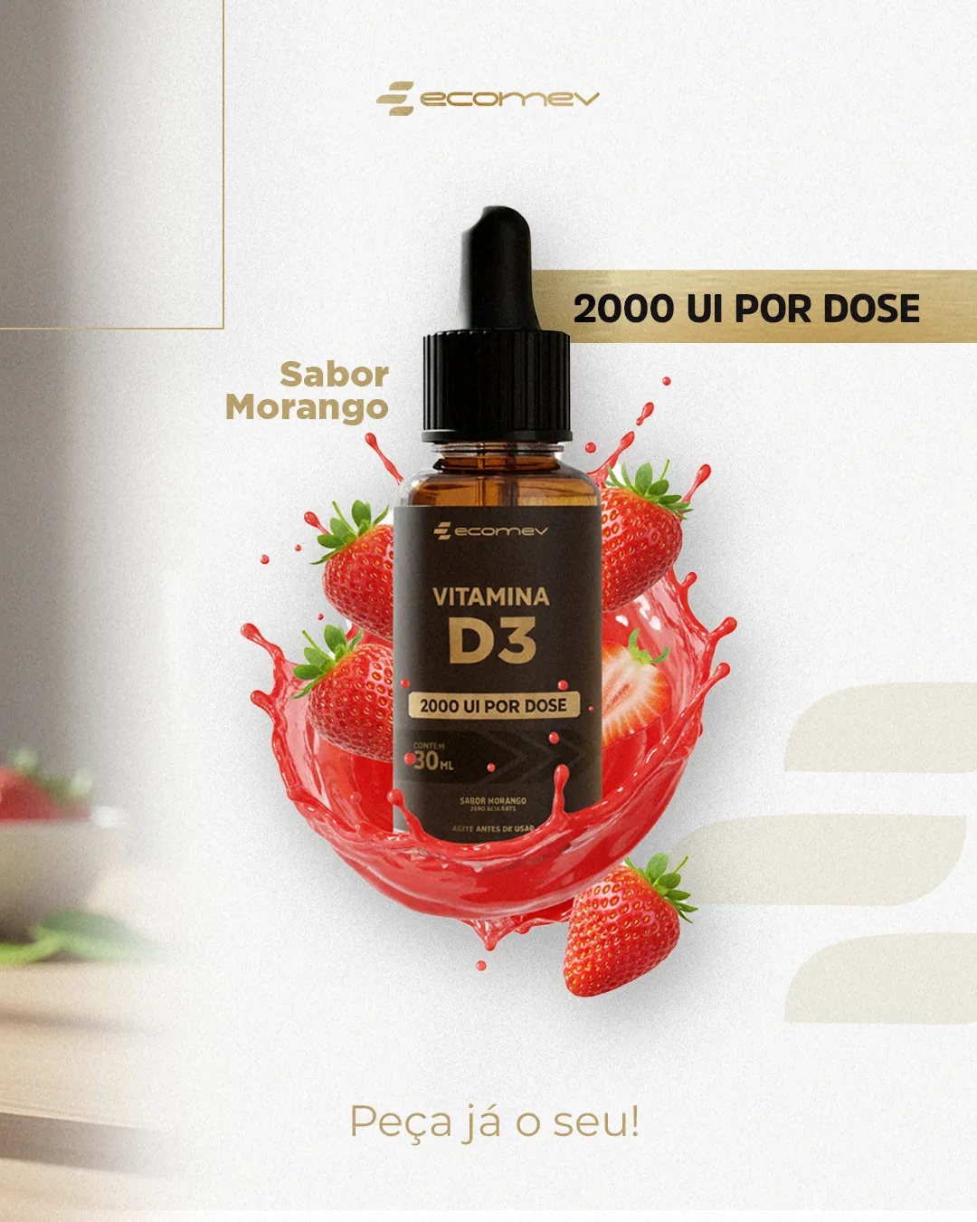 Vitamina D3 2.000Ui em Gotas 30Ml - Sabor Morango
