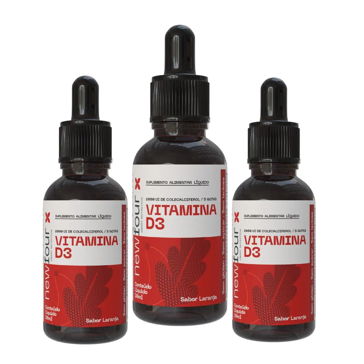 Vitamina D3 2000 Ui de Colecalciferol em Gotas Laranja Kit com 3 Frascos com Total de 90Ml