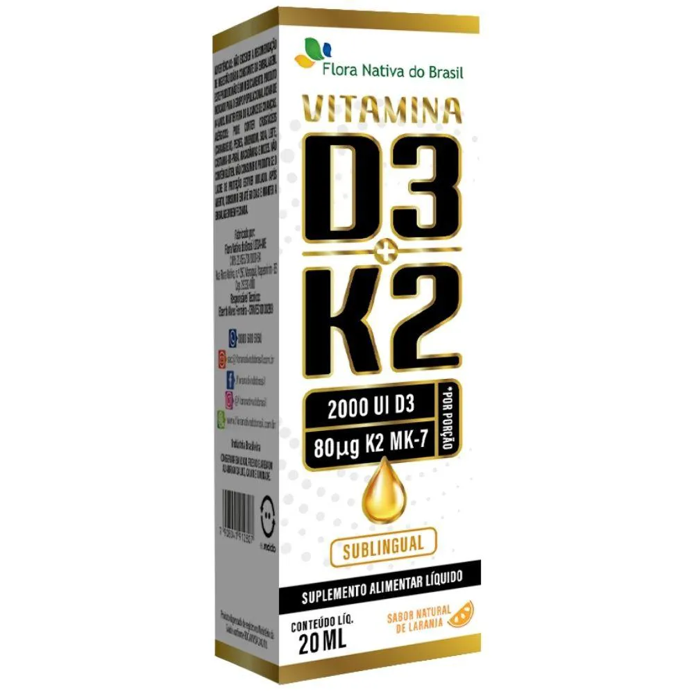 Vitamina D3 + K2 Sublingual em Gotas 20Ml - Flora Nativa Laranja