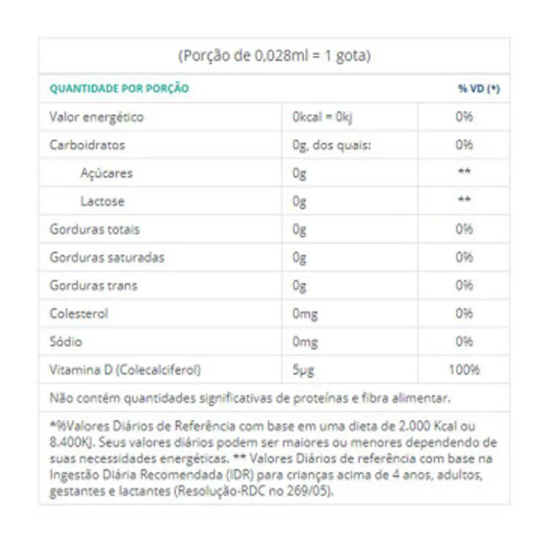 vitamina D3 Mais Kids 200 Ui Catarinense 20ml Catarinense Nutrição é uma linha de suplementos alimentares desenvolvida com a finalidade de oferecer fórmulas balanceadas, sua composição de vitaminas e minerais foi cuidadosamente selecionada. vitamina d 200 UI em gotas possui sabor limão, direcionado ao público kids, a partir de 4 anos. A vitamina D auxilia na formação de ossos e dentes. A vitamina D auxilia no funcionamento do sistema imune. 1 gota = 200UI. 100% da IDR de vitamina D.