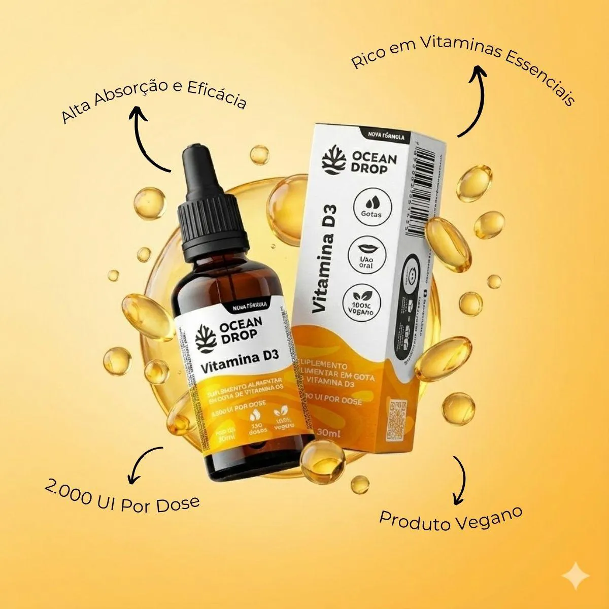 Este é um produto selecionado, focado na máxima eficiência. Nossa fórmula líquida, com sua base oleosa, assegura uma alta absorção de 2.000 UI (50 mcg) por porção, essencial para o organismo. Contribui ativamente para a saúde de ossos e dentes, além de apoiar o funcionamento do sistema imunológico. Por ser um produto vegano, ele se alinha perfeitamente a dietas baseadas em plantas, sendo rico em vitaminas essenciais para o seu dia a dia. Formas de Uso e Aplicações (Praticidade)
