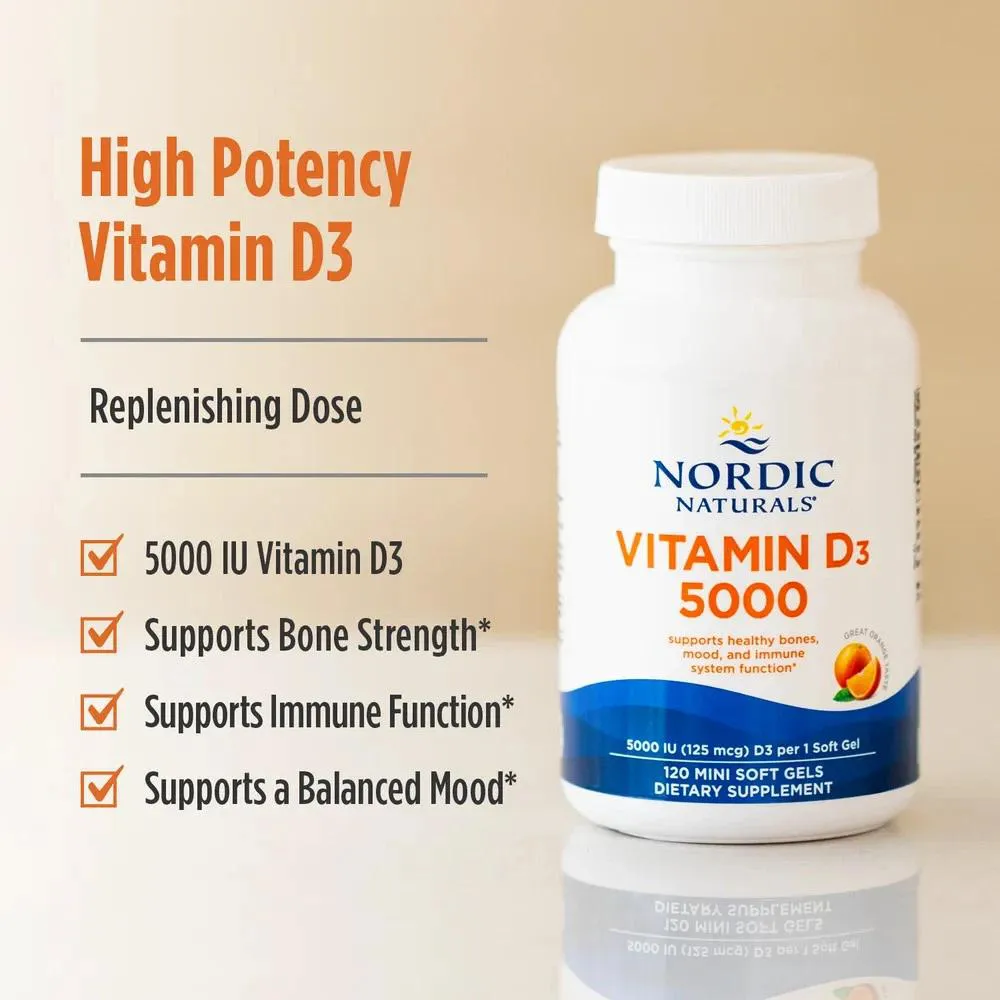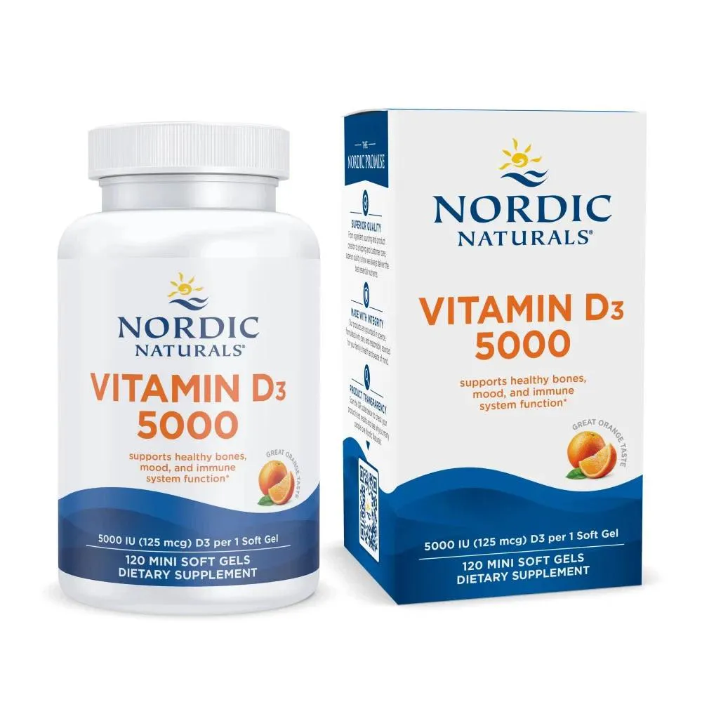 1. Nordic Naturals Vitamina D3_5000_UI: Descubra o suporte essencial da renomada marca Nordic Naturals com este suplemento de Vitamina D3 de alta potência. Cada embalagem contém 120 cápsulas softgel, formuladas para quem busca otimizar a manutenção diária do bem-estar. Este produto original e importado é ideal para integrar na sua rotina.