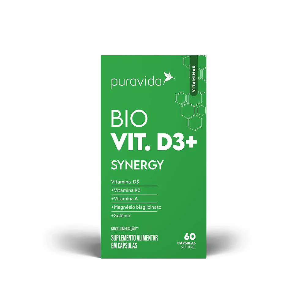 A vitamina D3 Synergy Puravida apresenta 2.000 UIs de vitamina D3 por cápsula. Combinada com nutrientes que complementam sua ação no organismo, como Vitamina A, Vitamina K2, Magnésio e Selênio, torna-se uma opção prática e segura para suplementação.