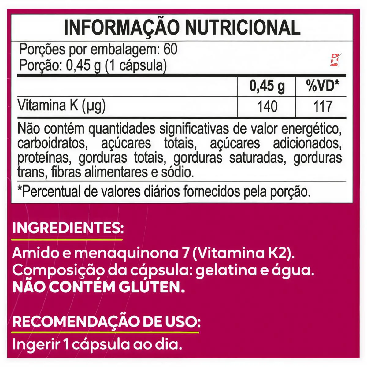 Vitamina K2 Concentrada Menaquinona 7 Mk-7 1 ao Dia 60 Capsulas - Maltta Nutrition