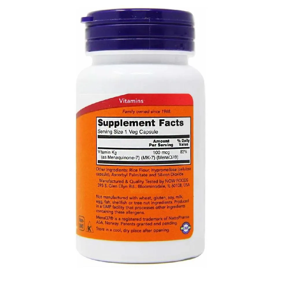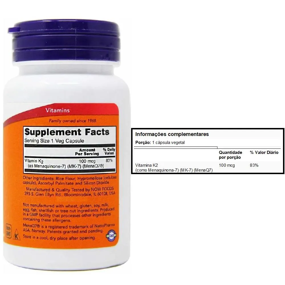 Vitamina K2 Mk7 100mcg (60 cápsulas Vegetais) Now Foods