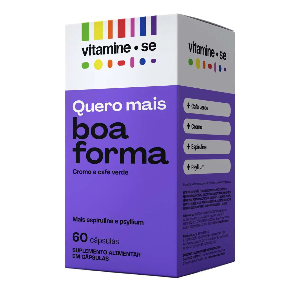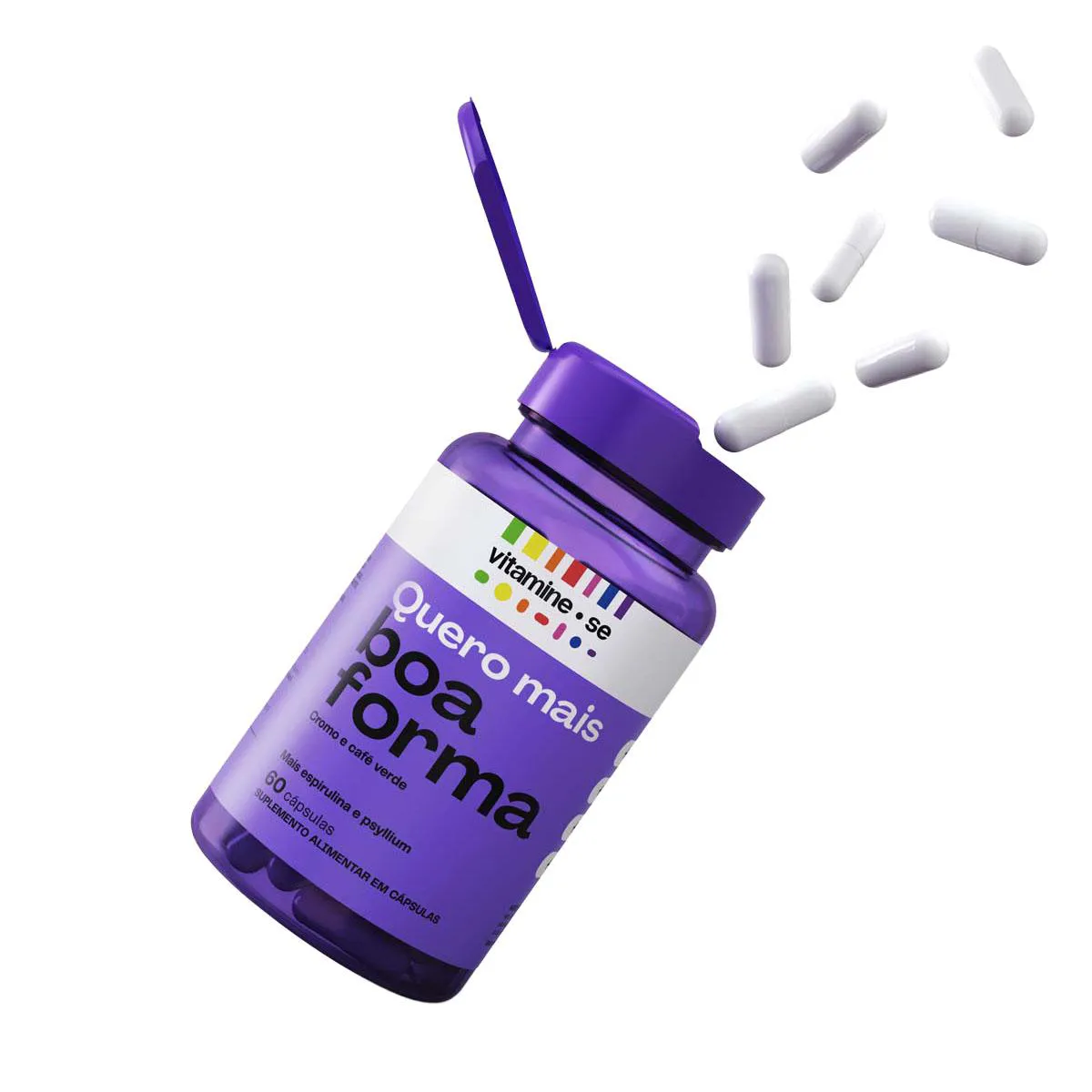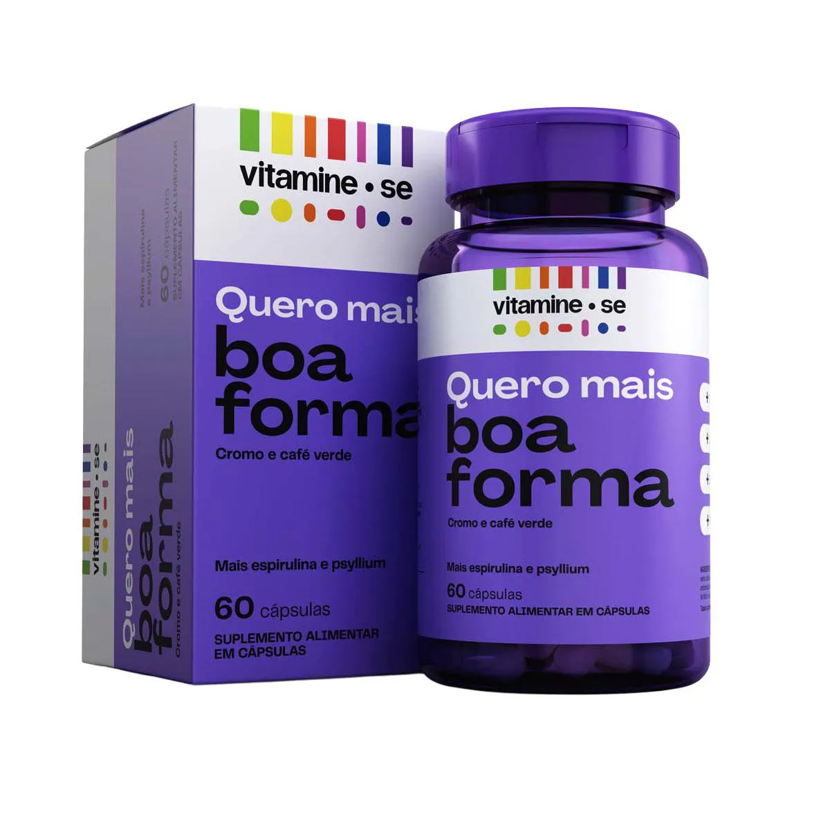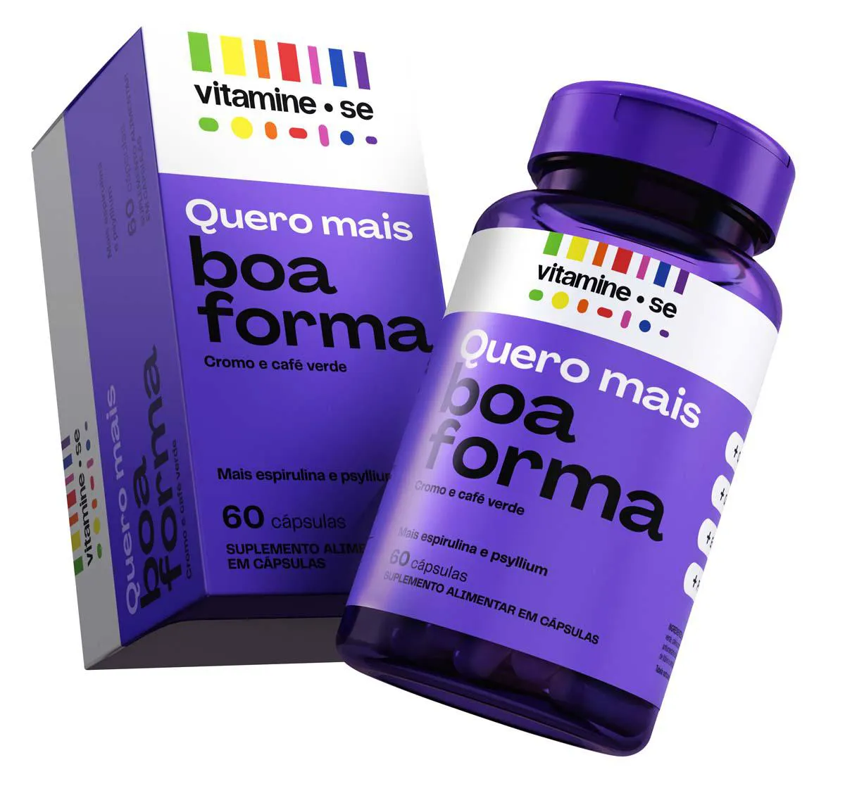 O Vitamine-se Quero Boa Forma é um suplemento alimentar que combina uma cuidadosa seleção de ingredientes naturais como Cromo, Café Verde, Psyllium, Espirulina e Cafeína, para auxiliar no metabolismo de gorduras e carboidratos, promovendo um estilo de vida saudável e equilibrado.