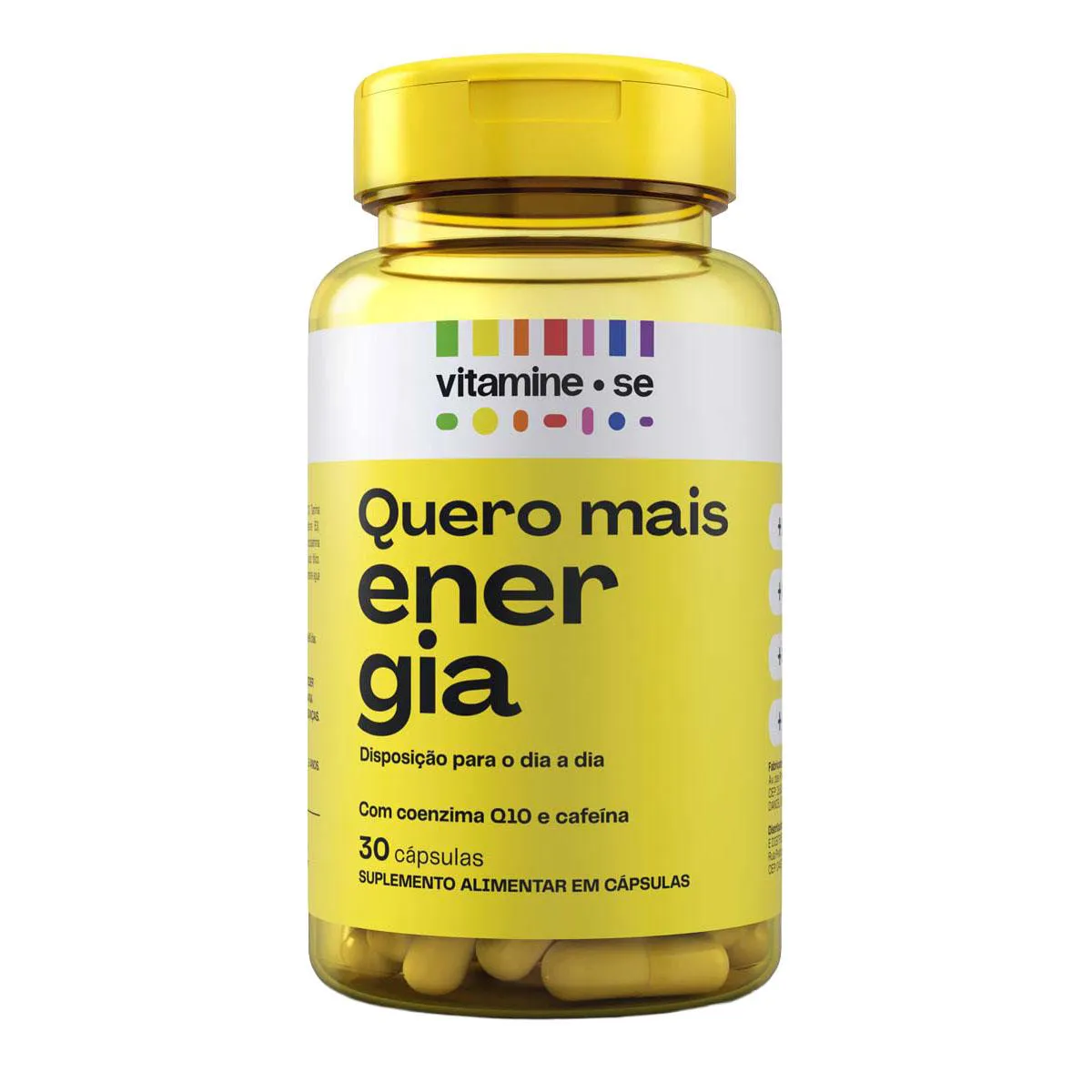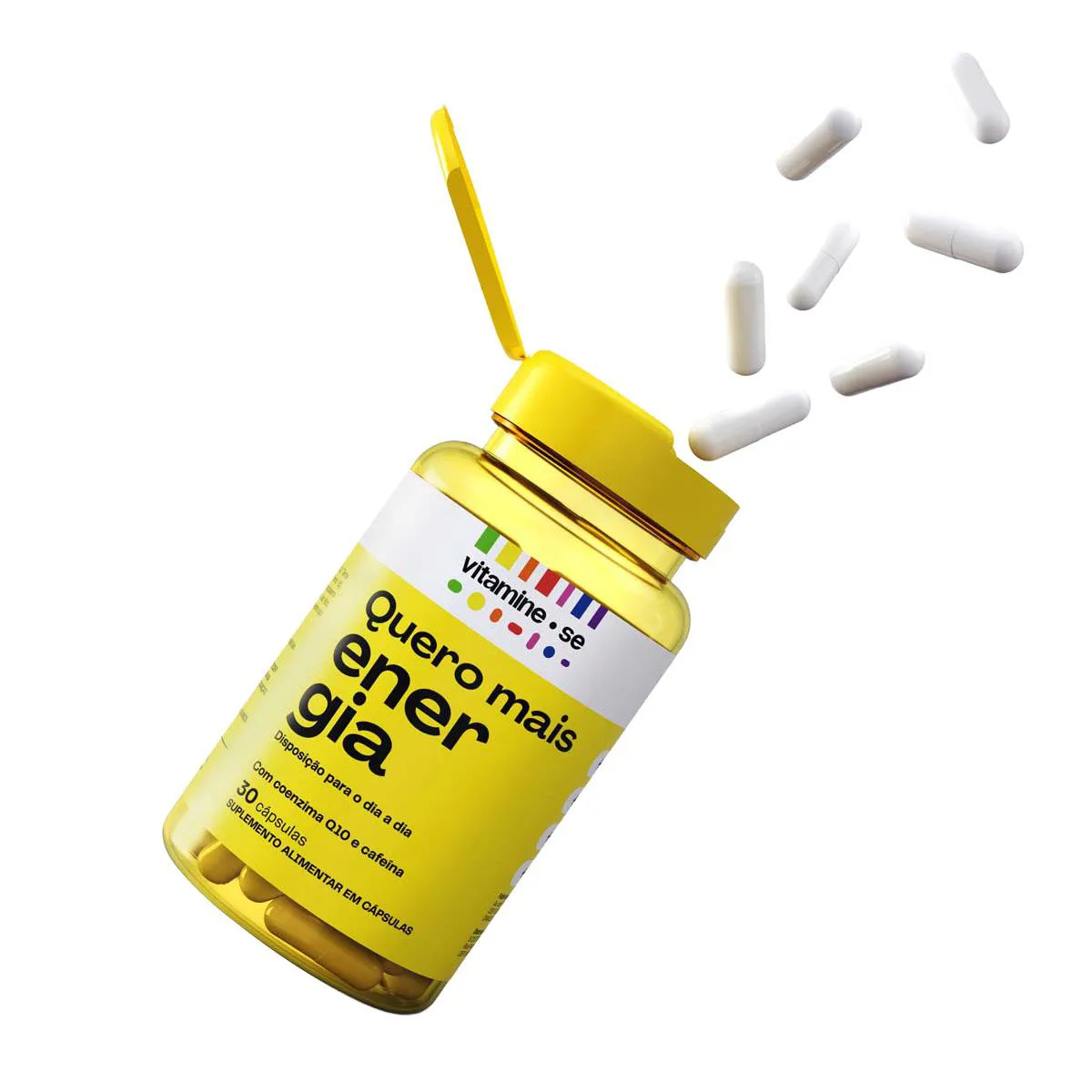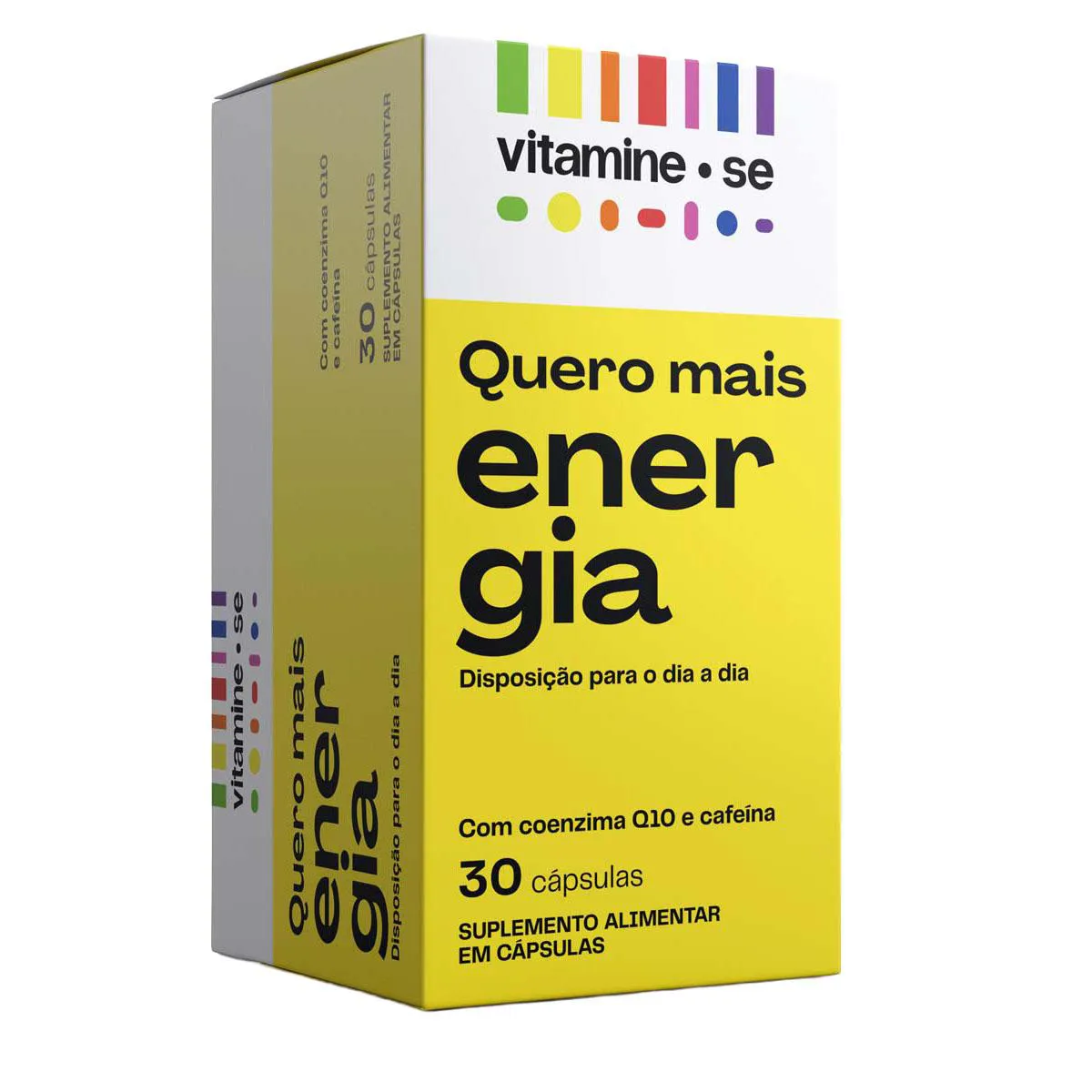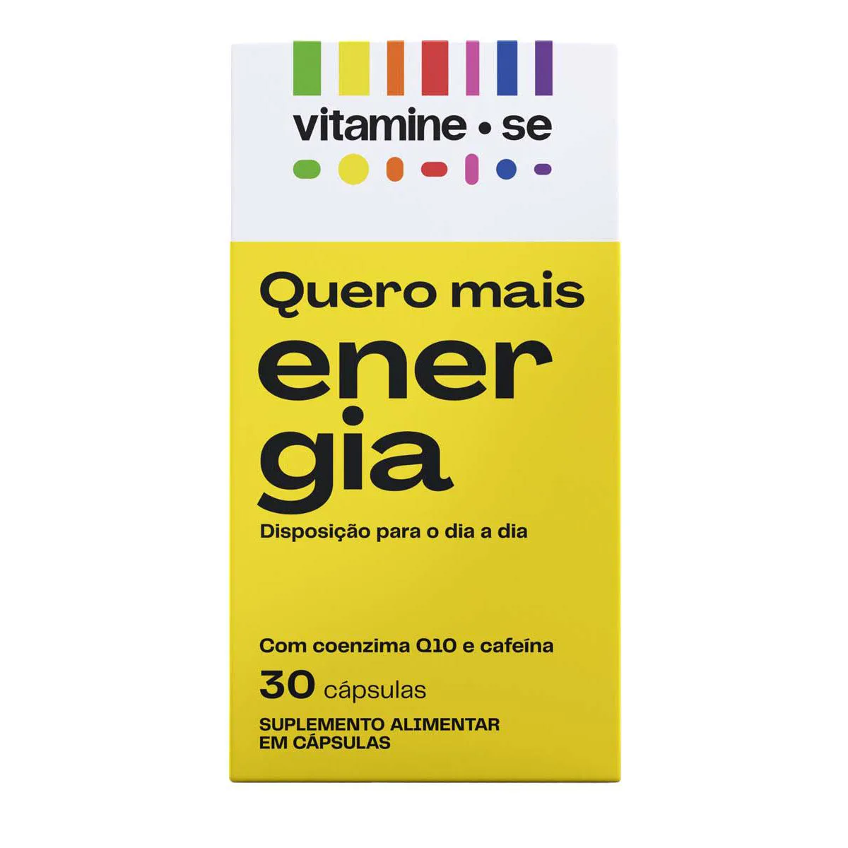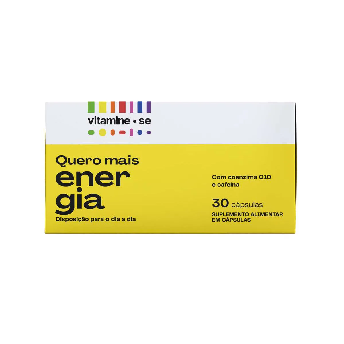 Vitamine-se Quero Mais Energia é um suplemento alimentar em cápsulas que combina ativos que auxiliam a energia e a disposição diariamente, sem efeito rebote. Sua fórmula traz vitaminas do Complexo B (B1, B2, B3, B5, B6, B12), Coenzima Q10, Cafeína, Taurina, Zinco e vitamina e. Ele está disponível em embalagem com 30 cápsulas.