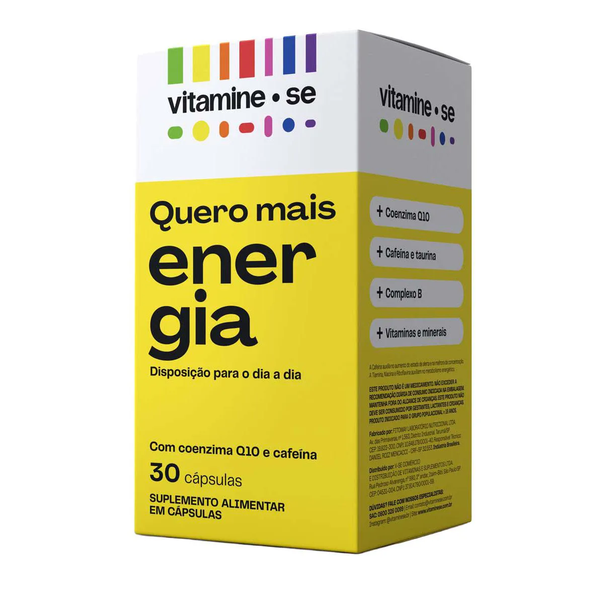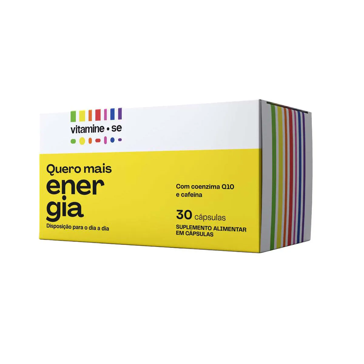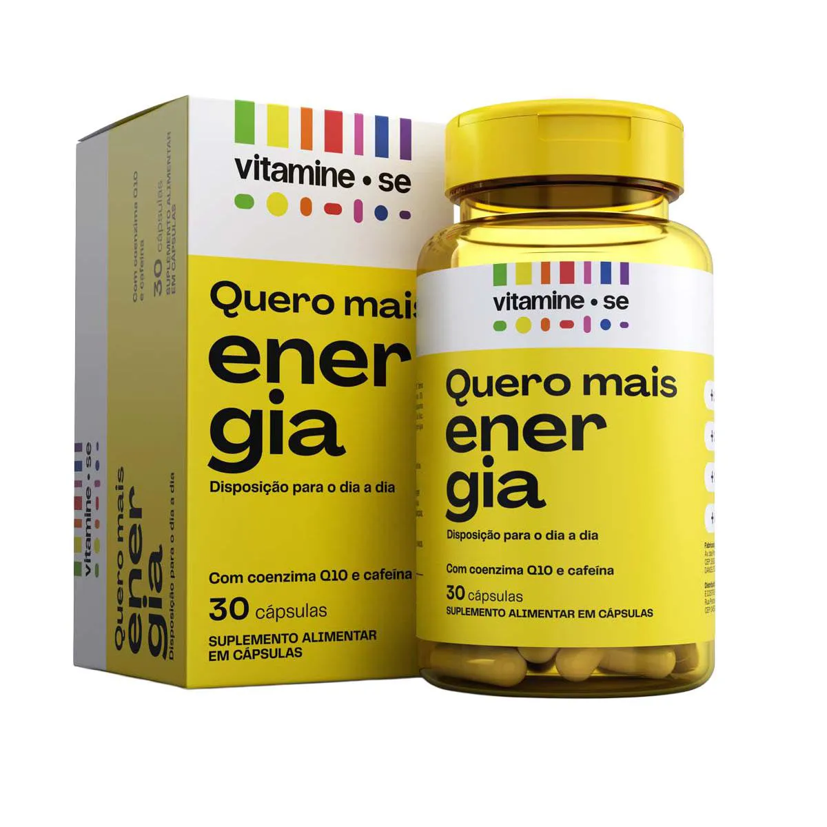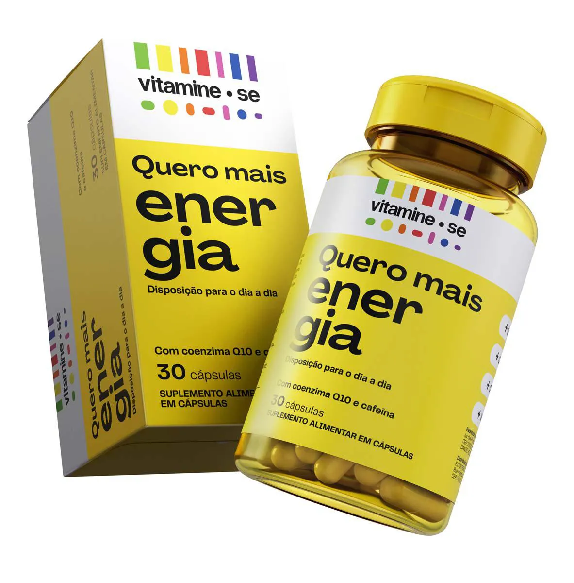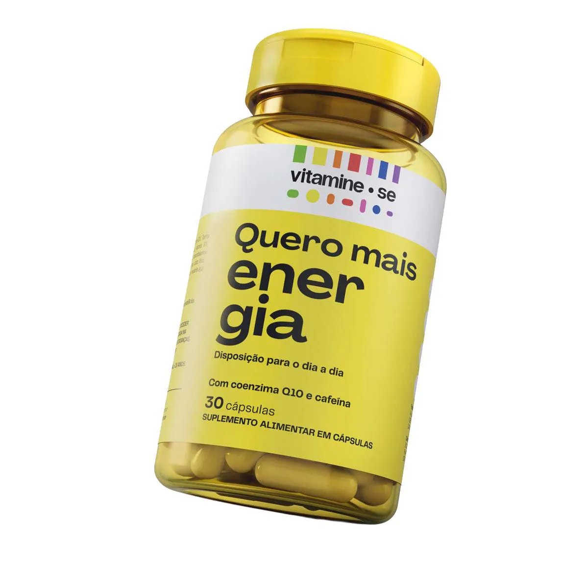 Vitamine-se Quero Mais Energia é um suplemento alimentar em cápsulas que combina ativos que auxiliam a energia e a disposição diariamente, sem efeito rebote. Sua fórmula traz vitaminas do Complexo B (B1, B2, B3, B5, B6, B12), Coenzima Q10, Cafeína, Taurina, Zinco e vitamina e. Ele está disponível em embalagem com 30 cápsulas.