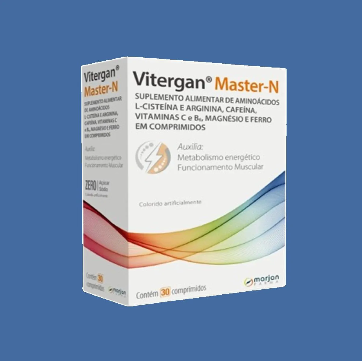 O Vitergan Master-N é um suplemento alimentar composto por aminoácidos, vitaminas e minerais essenciais, apresentado em forma de comprimidos, sem lactose e sem glúten. Desenvolvido para pessoas a partir de 12 anos, o produto é fabricado pela marca Marjan.