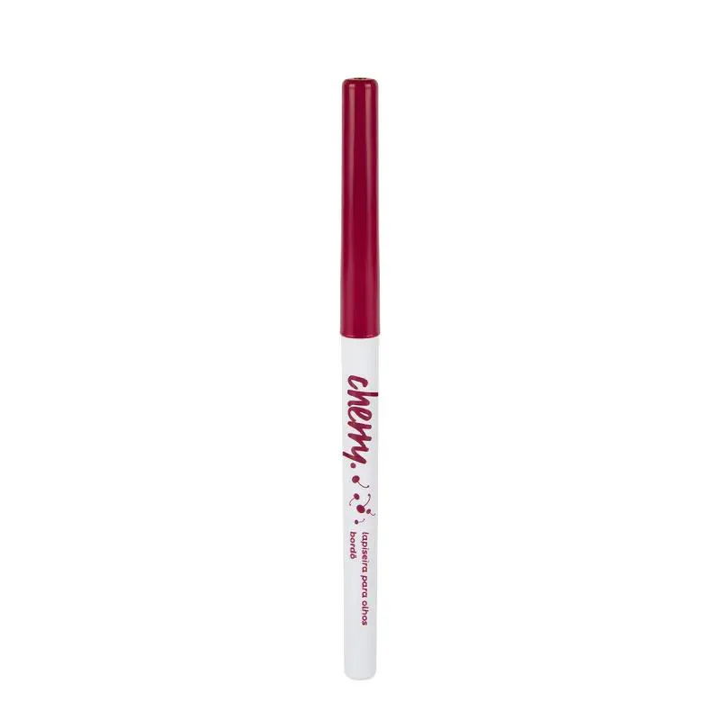 lapiseira para olhos cherry com coloração bordô que destaca os olhos esverdeados e castanhos claros, é macia e pigmentada, ideal para usar na linha d’agua ou para ou fazer um delineado esfumado já que ela é a prova d'Água e super resistente! além disso, ela é retrátil e muito prática, dispensando o uso do apontador.