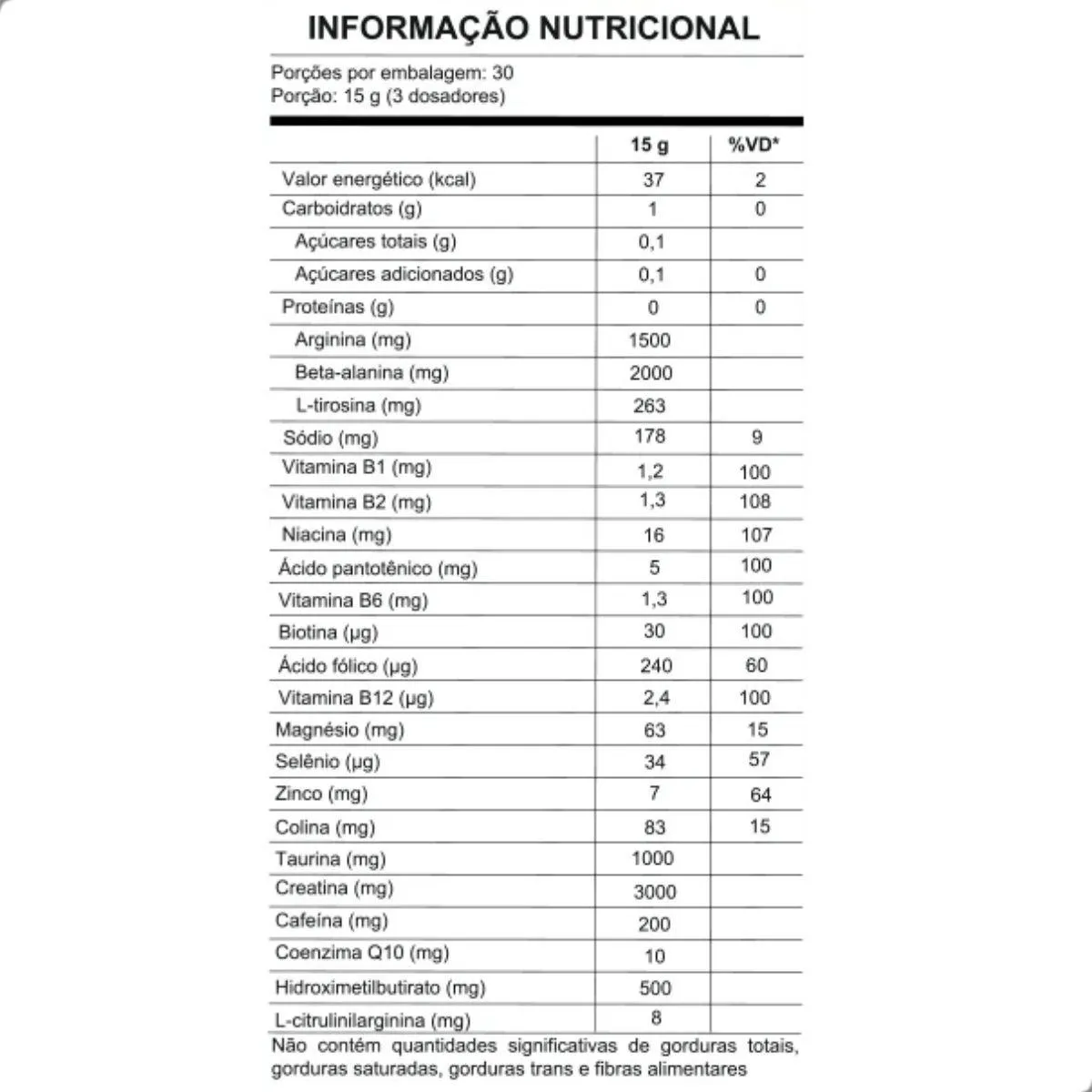 Warzone Rocket Energy Pre Workout Pump Citarg 450g Under Labz foi desenvolvido para consumidores que valorizam um suplemento com identidade marcante, comunicação objetiva e uma rotina prática. A Under Labz apresenta este produto dentro da linha Warzone, reconhecida pelo visual forte e pela proposta direta, sempre reforçando clareza e organização no uso. A intenção é oferecer um pré-treino que se encaixe com facilidade no dia a dia, proporcionando uma experiência simples, funcional e alinhada ao estilo de vida moderno.A comunicação do produto segue o padrão transparente da marca, que evita termos técnicos e declarações que ultrapassem as normas de suplementos alimentares. Essa abordagem torna o entendimento mais rápido e acessível, permitindo que o consumidor compreenda a proposta do suplemento sem complicações. A Under Labz trabalha com uma linguagem clara, reforçando a confiança e o compromisso em apresentar informações consistentes, sempre dentro das diretrizes exigidas.O formato em pó favorece a praticidade e a adaptação a diferentes rotinas, sendo ideal para quem busca produtos simples de incluir no cotidiano. Essa flexibilidade combina com consumidores que possuem agendas intensas e precisam de soluções diretas, sem etapas complexas. Warzone Rocket Energy acompanha essa necessidade ao oferecer uma estrutura que prioriza conveniência, mantendo a essência da marca em cada detalhe.Com identidade visual imponente e uma proposta que remete intensidade e personalidade, o produto reforça o estilo Under Labz de unir impacto estético e simplicidade no uso. Warzone Rocket Energy Pre Workout Pump Citarg 450g se apresenta como uma opção coerente para quem valoriza disciplina, clareza e um suplemento que se integra naturalmente à rotina. A marca transmite segurança ao entregar um produto alinhado à sua filosofia: objetividade, presença visual forte e uma experiência comercial bem definida.