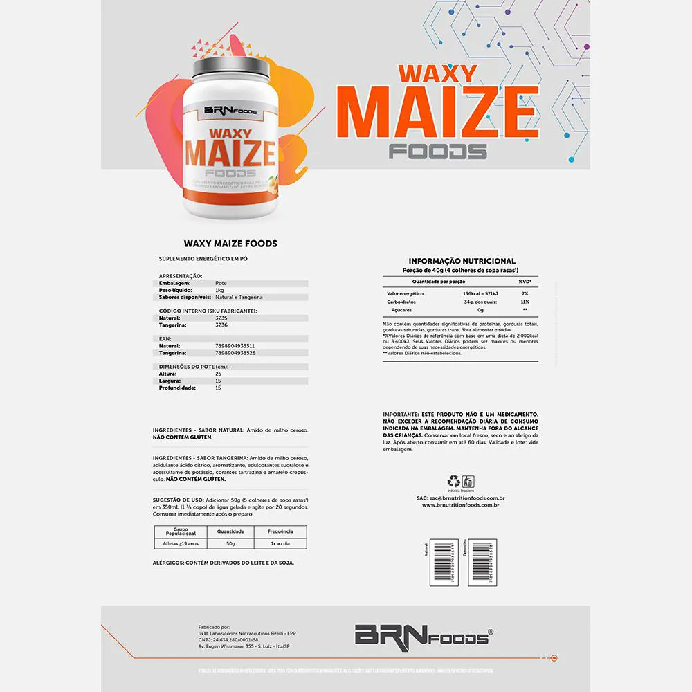 Ingredientes: Amido de milho ceroso. NÃO CONTÉM GLÚTEN.
