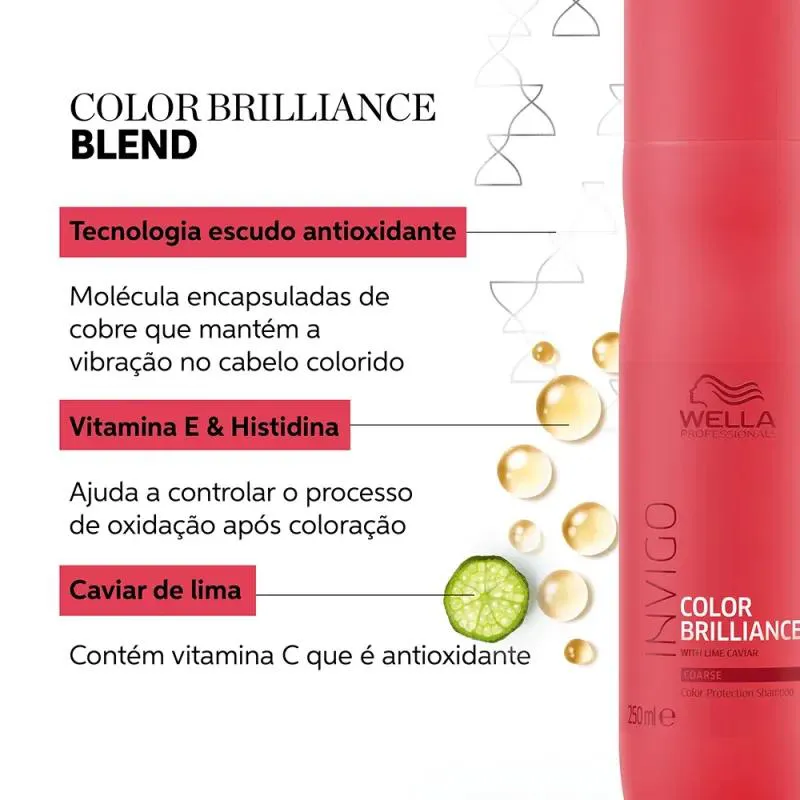Wella Professionals Invigo Color Brilliance - shampoo 250ml: promove limpeza dos fios de maneira eficiente e que não agride a cor. Também sela as cutículas para evitar desbotamento.