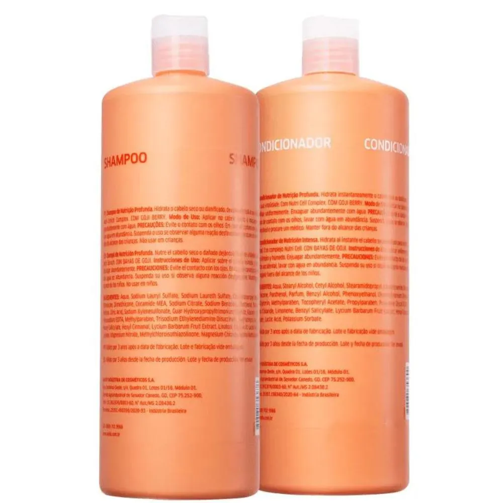 A Wella Invigo Nutri Enrich traz um novo conceito em nutrição e hidratação dos fios. A linha de Wella Invigo Enrich com Goji Berry repõe profundamente e hidrata o cabelo seco e ressecado. Com Nutri Complex. Atende todos os tipos de cabelos, sejam Normais a Finos ou Gossos, que estejam secos, ressecados, frizados, precisando de nutrição, reparação e hidratação profunda diariamente. Ideal para cabelos loiros, com luzes, coloridos, com proGessiva, selante e tambem alisamento, pois são químicas que tendem a ressecar os fios, deixandoos sem movimento, brilho, e desidratados. invigo NutriEnrich com NutriEnrichBlend: Ácido Oleico e Pantenol proporcionam hidratação e nutrição, enquanto a vitamina e protege o cabelo de mais estresse e danos futuros. Goji Berry e conhecido por ser extremamente rico em vitaminas, minerais e peptídeos. FraGância: Frutal, Chipre e Almiscar Uma característica elegante de chypre entrelaçada com frutas polposas e inovadoras e uma nutrição quente e seca. Topo: Romã, Ameixa Congelada, Bergamota Meio: Flor de Tonka, Cattlya Branca, Orquídea, Peonia Rosa Base: Chypre Loiro, Chrimire de Almiscar, Madeiras shampoo Wella Invigo Nutri Enrich 1 Litro: Hidrata o cabelo seco ou sensível, devolvendolhe toda a sua vitalidade enquanto limpa e nutre profundamente os cabelos sem pesar. Restaura e recupera a fibra capilar dos danos acumulados, proporciona movimento, emoliencia e reparação, desembaraço e facilidade ao pentear, alem de prevenir contra o frizz. Com Nutri Enrich Complex e Goji Berry. Modo de Usar: Aplique nos cabelos úmidos e massagear, enxague abundantemente com água. Repita se necessário. condicionador Wella Invigo Nutri Enrich 1 Litro: Hidrata instantaneamente o cabelo seco ou sensível, devolvendolhe toda a sua vitalidade enquanto limpa e nutre profundamente os cabelos sem pesar. Restaura e recupera a fibra capilar dos danos acumulados, proporciona movimento, emoliencia e reparação, desembaraço e facilidade ao pentear, alem de prevenir contra o frizz. Com Nutri Cell Complex e Goji Berry. Modo de Usar: Aplique nos cabelos limpos e úmidos, do comprimento as pontas, massagear. Em seguida, enxague abundantemente com água.