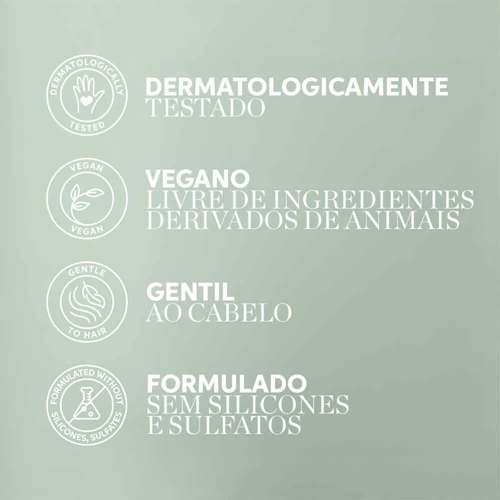 Livre de silicones, sulfatos, corantes e parabenos, este condicionador é dermatologicamente testado, garantindo segurança e suavidade para o couro cabeludo e os fios.