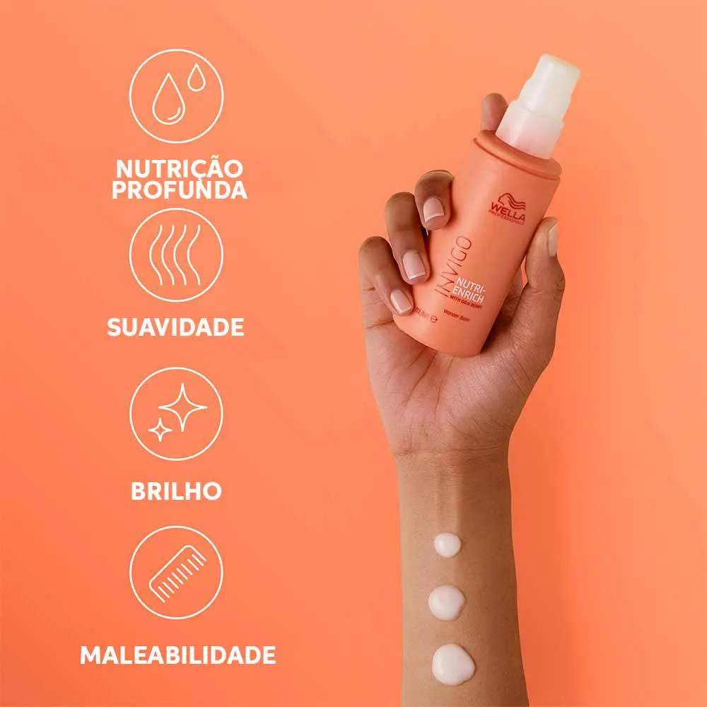 Leave-in Wella Professionals Invigo Nutri-Enrich Wonder Balm promove nutrição instantânea, maciez de longa duração e adiciona controle, brilho e movimento. É uma formula leave-in extra rica que derrete no cabelo, penetrando as fibras para flexibilidade profunda. Wonder Balm com Enrich complex promove múltiplos beneficios para o cabelo. Notas de fragrância vitamínicas no topo, notas do meio exuberantes, notas de Base quente e nutritivas.