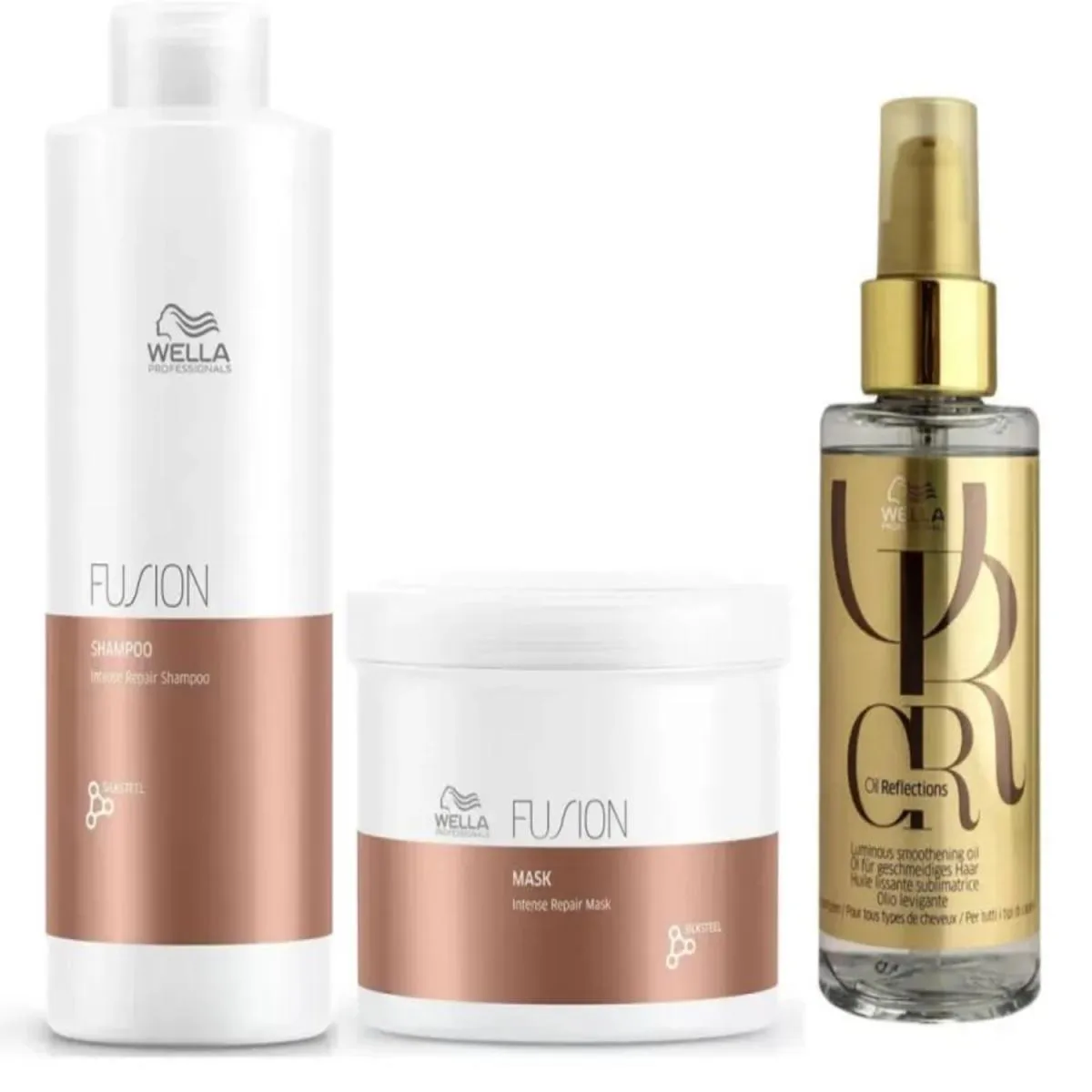 Descrição: Kit Wella Professionals Fusion + Oil Reflections Salon Trio (3 Produtos)