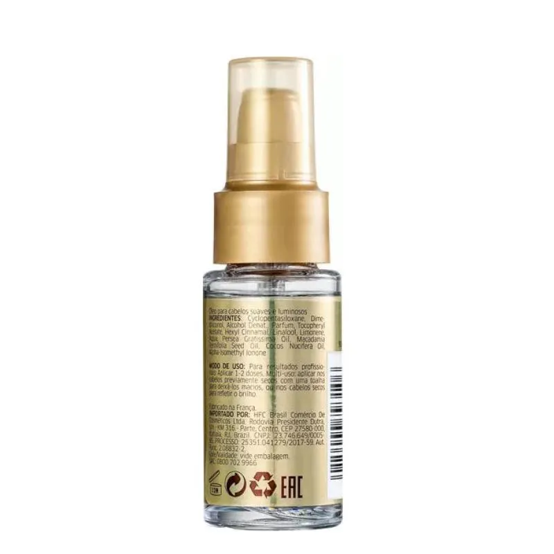 O Wella Professionals Oil Reflections é um óleo finalizador nutritivo e versátil desenvolvido para brilho espelhado e suavidade instantâneos em todos os tipos de cabelo. Sua fórmula leve, mas potente, é enriquecida com Óleo de Semente de Camélia e Extrato de Chá Branco, que atuam nutrindo profundamente a fibra capilar, selando as cutículas e proporcionando proteção térmica e controle de frizz duradouro. O óleo ajuda a realçar a cor e o brilho natural dos fios, sem deixar o cabelo com aspecto oleoso ou pesado. Para usar, aplique algumas gotas nas palmas das mãos e distribua uniformemente no cabelo úmido antes de secar, para proteção e maciez, ou nos fios secos para o toque final de luminosidade e controle de frizz. É um elixir de beleza essencial que pode ser usado diariamente.