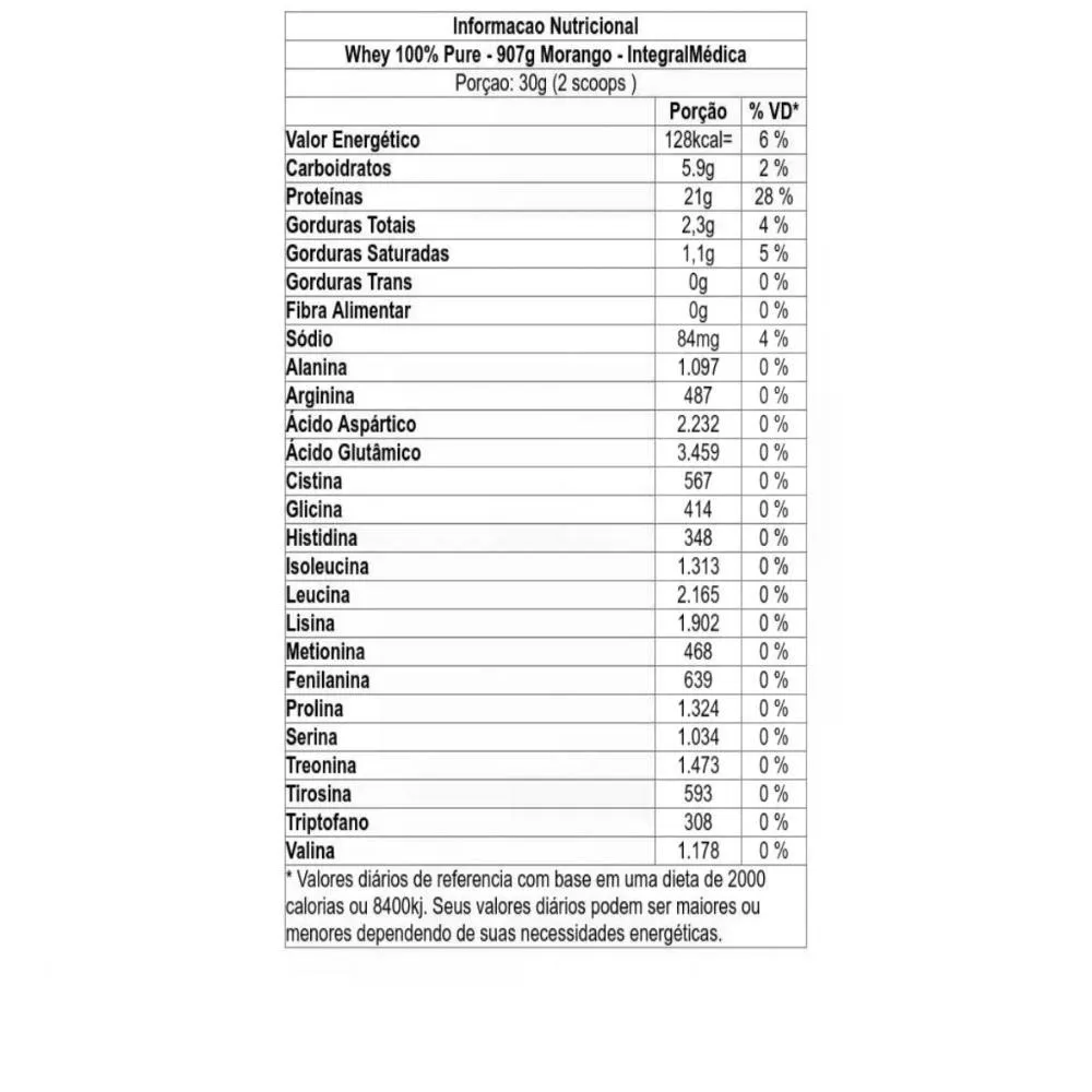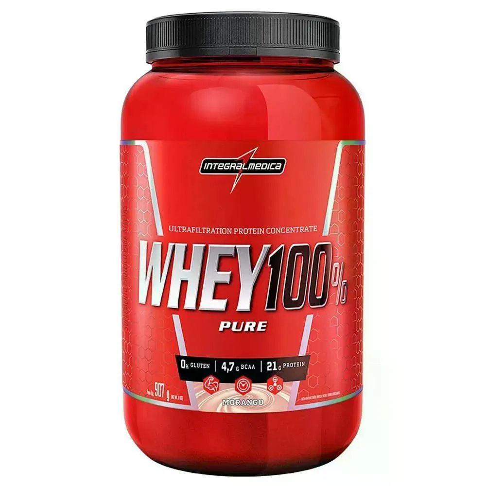 WHEY 100% PURE INTEGRALMEDICA MORANGO 907G