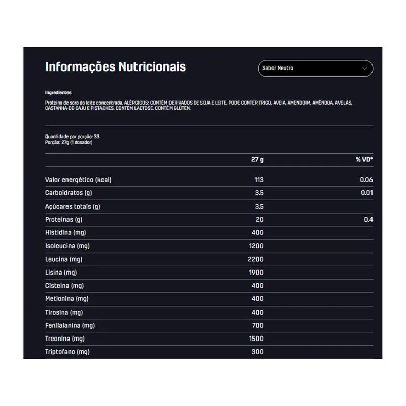 O Whey Concentrado é uma proteína pura derivada do soro do leite, produzida com matéria-prima importada do Canadá. É um suplemento proteico com fórmula limpa e funcional, desenvolvido para praticantes de atividade física e pessoas que buscam uma vida mais ativa e saudável. Serve para promover a manutenção e o aumento da massa muscular, auxiliar na recuperação muscular, fortalecer o sistema imunológico e fornecer aminoácidos essenciais para a síntese muscular após a prática de esportes.