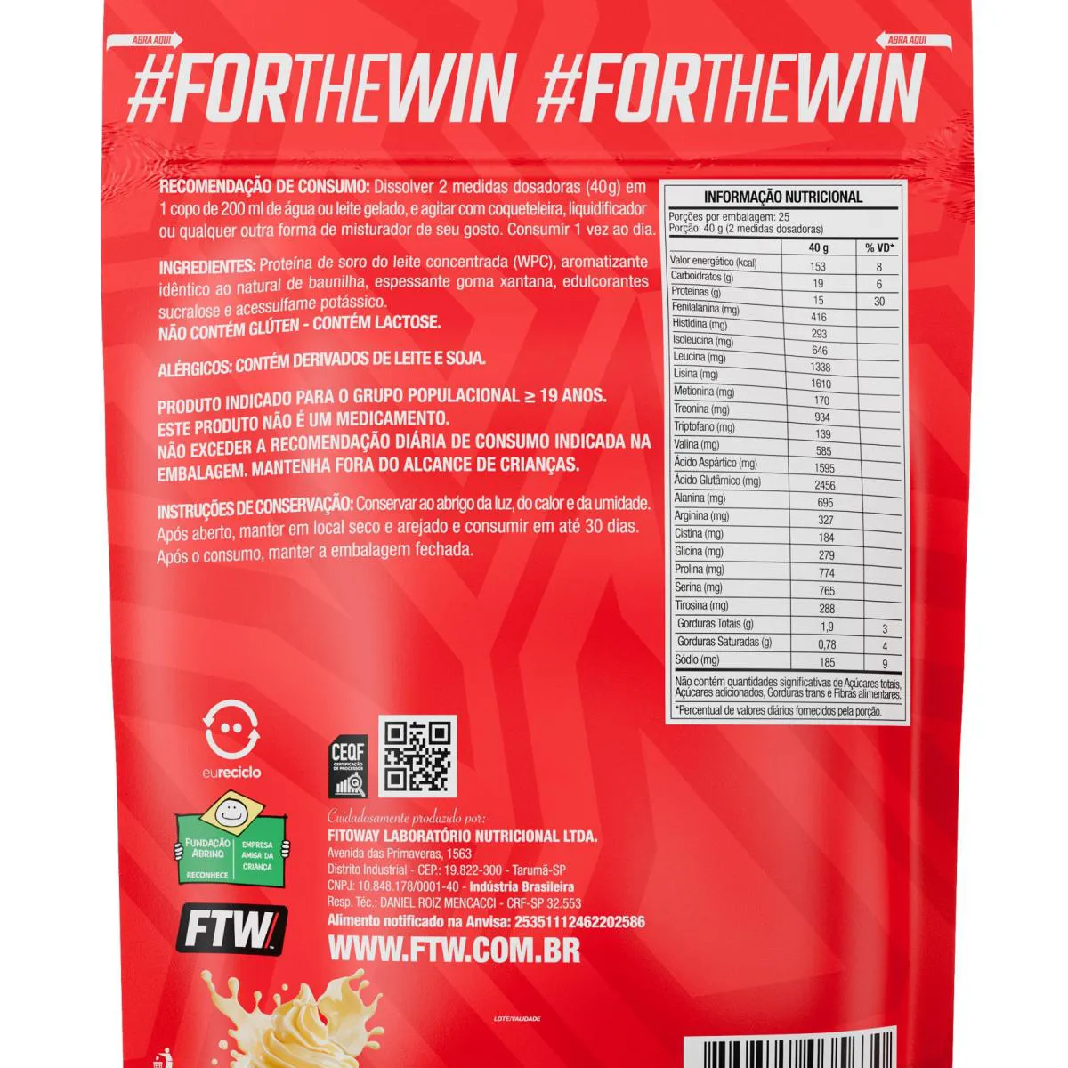 O Whey Concentrado FTW é um suplemento alimentar em pó à base de proteína do soro do leite concentrada, obtido do soro do leite. Seu objetivo principal é complementar a ingestão diária de proteínas, fornecendo cerca de 15g de proteína por porção e aminoácidos essenciais para quem deseja incluir mais proteína na rotina de forma prática, saborosa e variada.