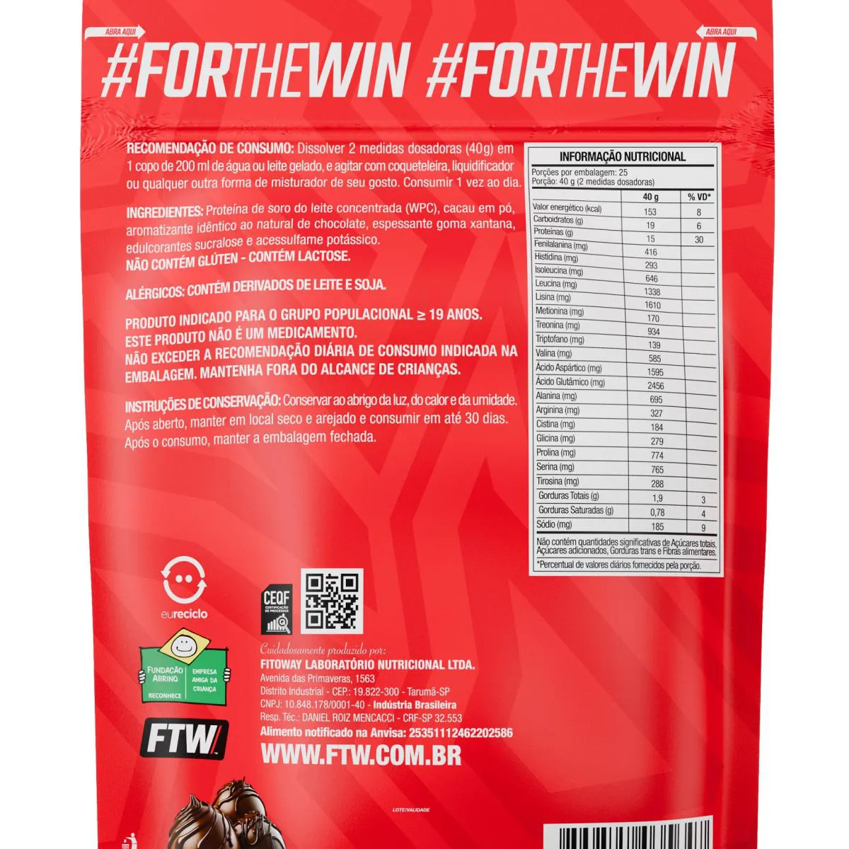 - Fornece cerca de 15g de proteína por porção (40g).