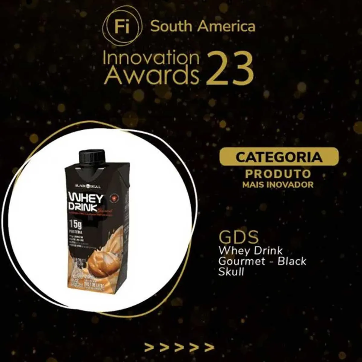 É com imenso orgulho que anunciamos a nossa vitória no Food Ingredients Innovation Awards 2023, Edição South America. O WHEY DRINK GOURMET foi eleito o suplemento alimentar mais inovador do mercado. Hoje, considerado o maior prêmio de inovação do setor, o Fi Innovation Awards conta com uma banca de jurados formada por profissionais C-Level e pesquisadores especializados, que se dedicam à evolução do setor de alimentos e bebidas, e contribuem com a inovação de ingredientes e produtos que farão parte do futuro de milhares de consumidores. Este prêmio reflete a excelência e inovação da BLACK SKULL. Criamos produtos não para apenas atender às necessidades dos nossos consumidores, mas sim, superar suas expectativas.