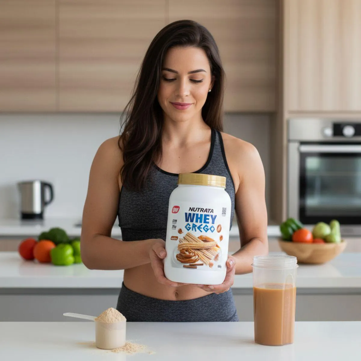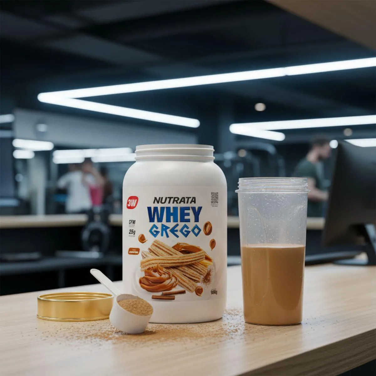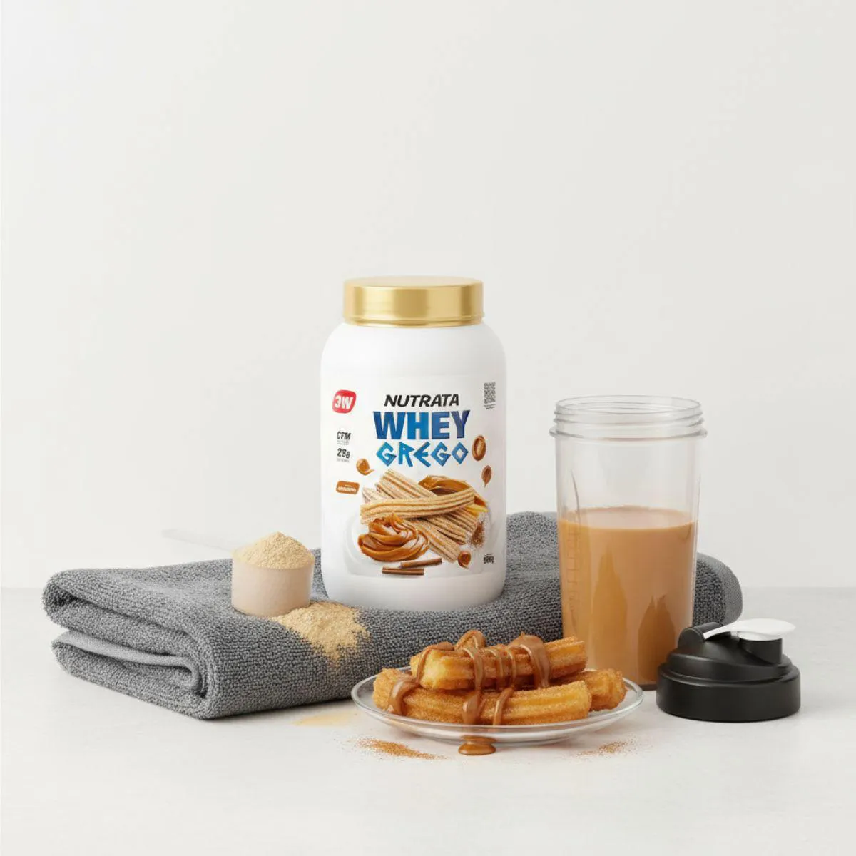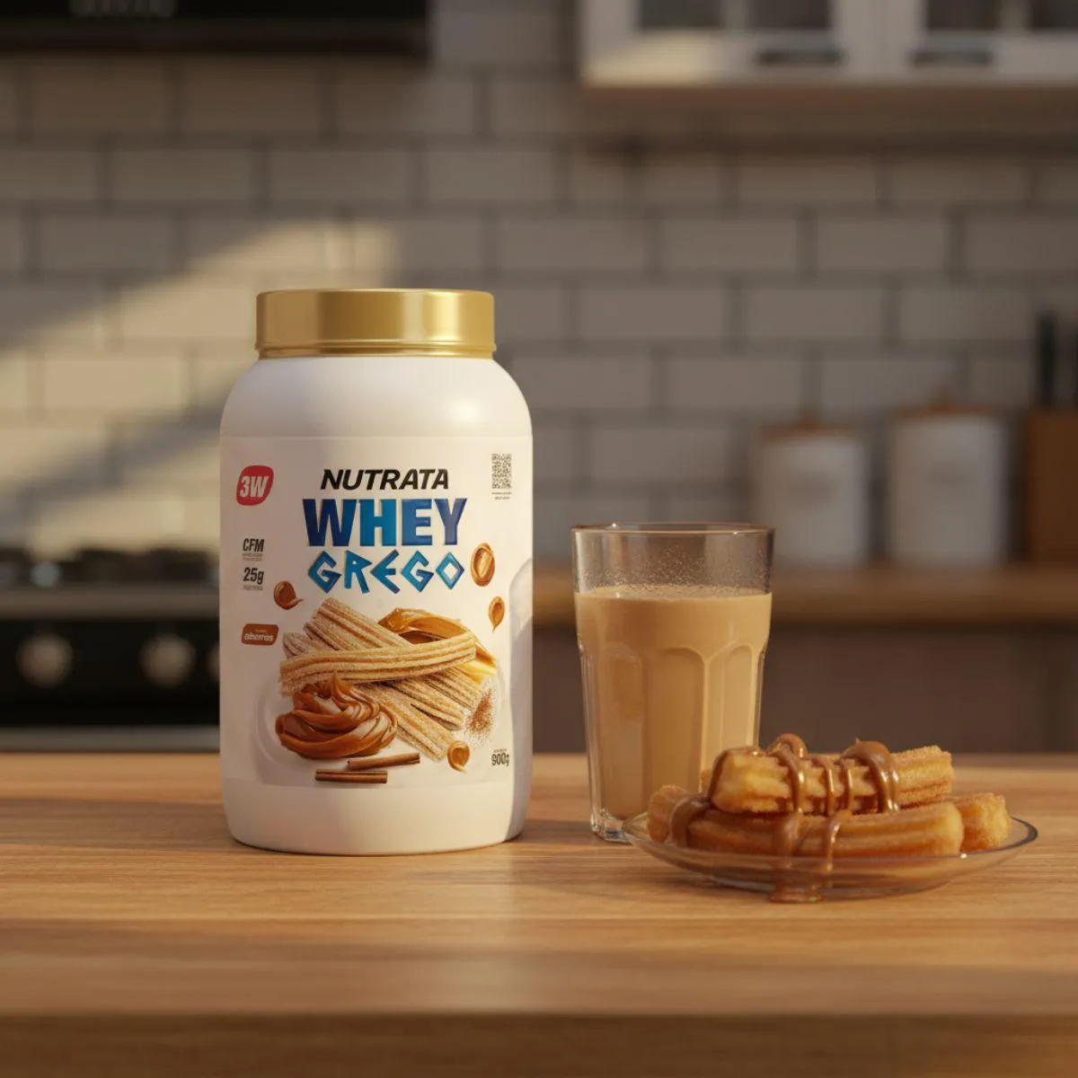 Whey Grego Protein 3W 25G Proteina Pote 900G Nutrata Churros