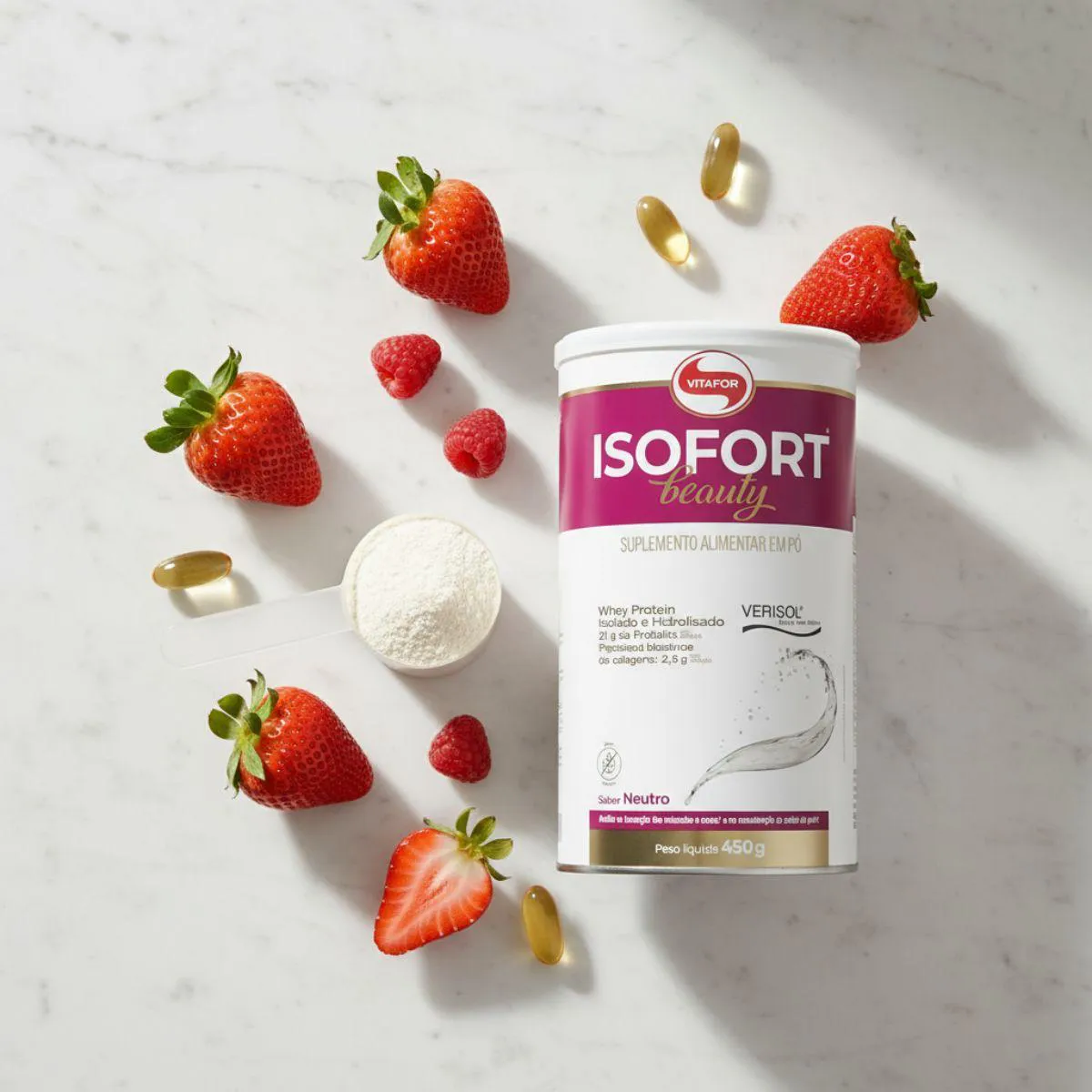 O Whey Isofort Beauty Verisol Isolado e Hidrolisado 450g Vitafor foi desenvolvido para consumidores que procuram uma proteína de perfil técnico, moderna e com fórmula clara. A combinação de whey isolado e hidrolisado com peptídeos de colágeno Verisol cria um suplemento funcional que complementa rotinas voltadas à nutrição equilibrada, mantendo total conformidade com as normas e sem promessas de efeitos fisiológicos. A Vitafor trabalha com matérias primas selecionadas e controle rigoroso de qualidade, reforçando confiança, segurança e transparência em cada etapa do processo.