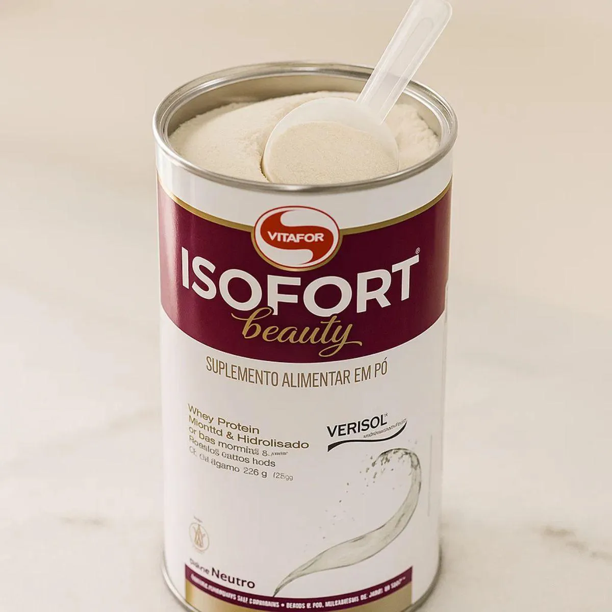A composição combina whey isolado e hidrolisado, preservando aminoácidos e peptídeos naturalmente presentes na proteína, associados ao colágeno Verisol em fórmula minimalista. A Vitafor aplica processos internos de verificação, padronização e análise de pureza, garantindo estabilidade e rastreabilidade em cada lote. O perfil proteico funcional atende consumidores que preferem fórmulas diretas, sem aditivos desnecessários. A textura leve do pó favorece uma dissolução uniforme, contribuindo para uma experiência sensorial confortável.