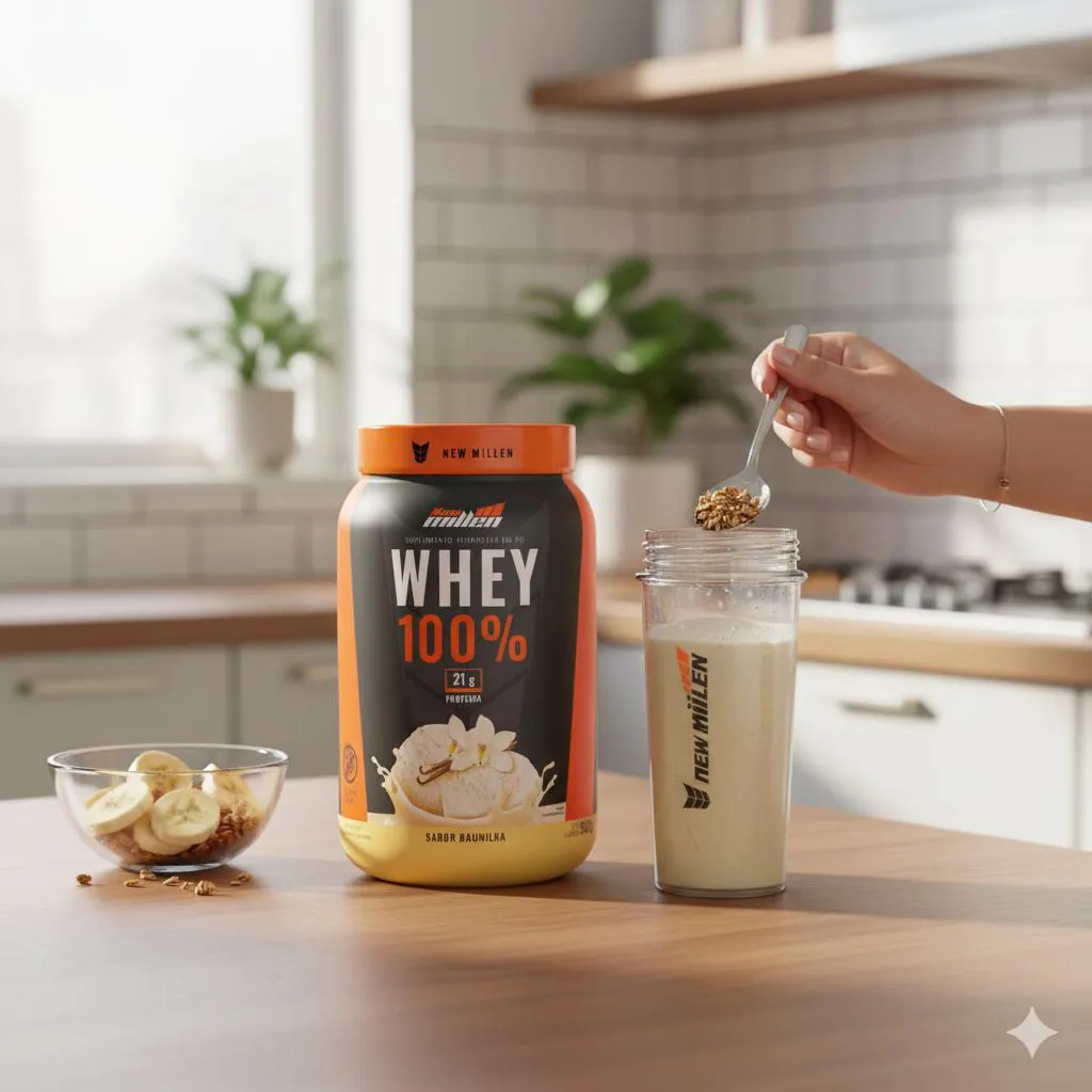 O Whey 100% Pote 900g da New Millen é um suplemento proteico desenvolvido para fornecer proteínas de alta qualidade, auxiliando no ganho de massa muscular magra e na recuperação pós-treino. Formulado com proteína concentrada do soro do leite (WPC), este produto oferece uma fonte rica em aminoácidos essenciais, incluindo bcaa e glutamina, fundamentais para o crescimento e reparo muscular. Com 21g de proteína por porção, o Whey 100% é ideal para atletas e praticantes de atividades físicas que buscam maximizar seus resultados de forma eficiente e saudável. Composição e Ingredientes - Proteína Concentrada do Soro do Leite (WPC)- Não contém glúten.