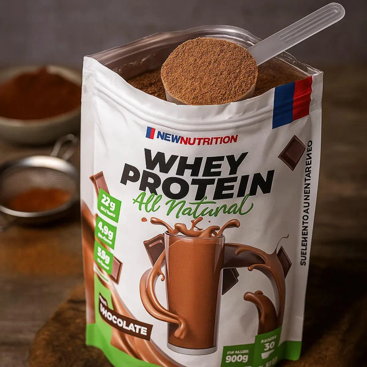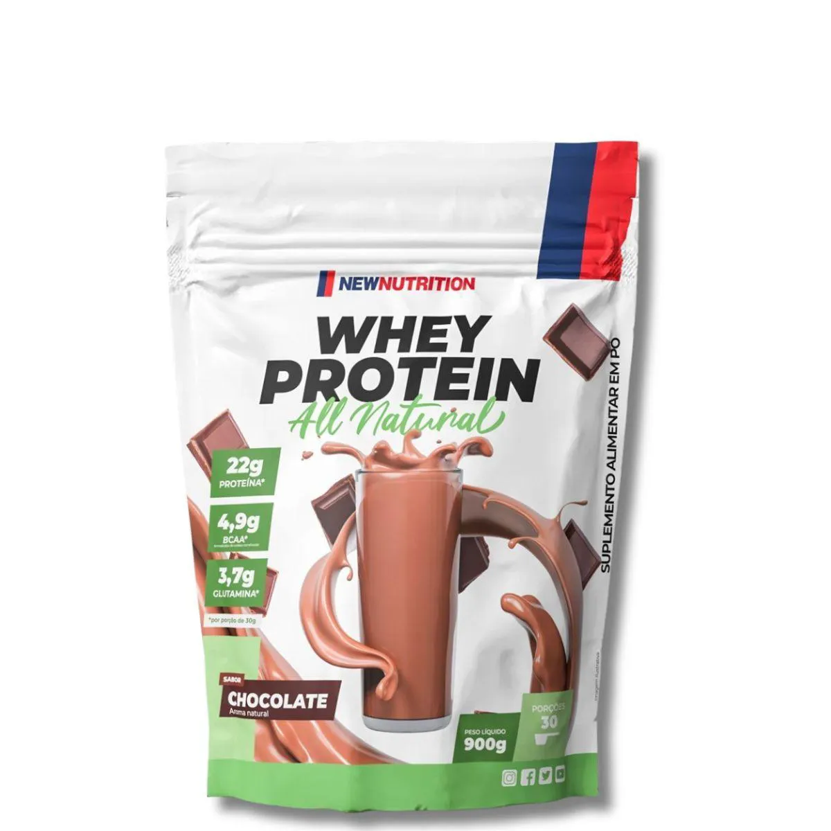 Whey Protein 100% All Natural 900G New Nutrition Chocolate
