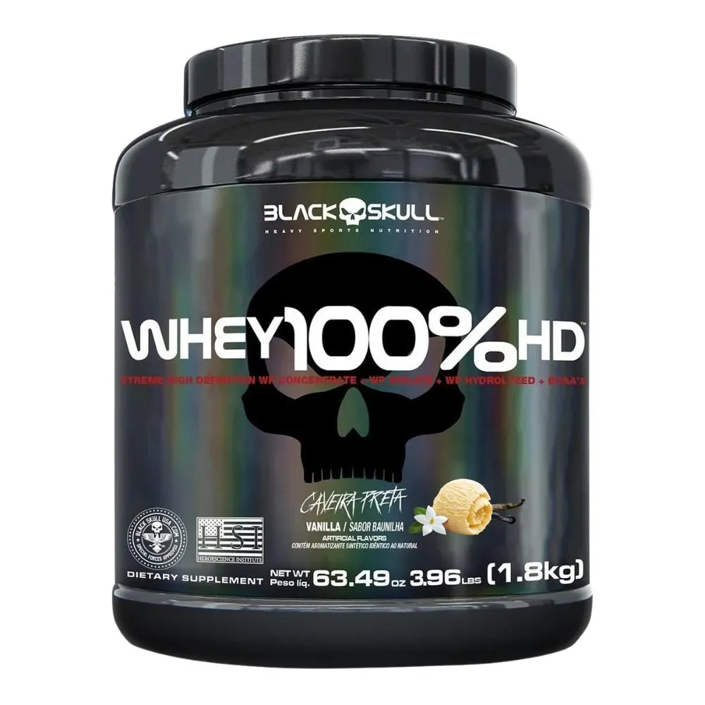 Whey Protein 100% Hd 1,8Kg Pote Black Skull - Baunilha