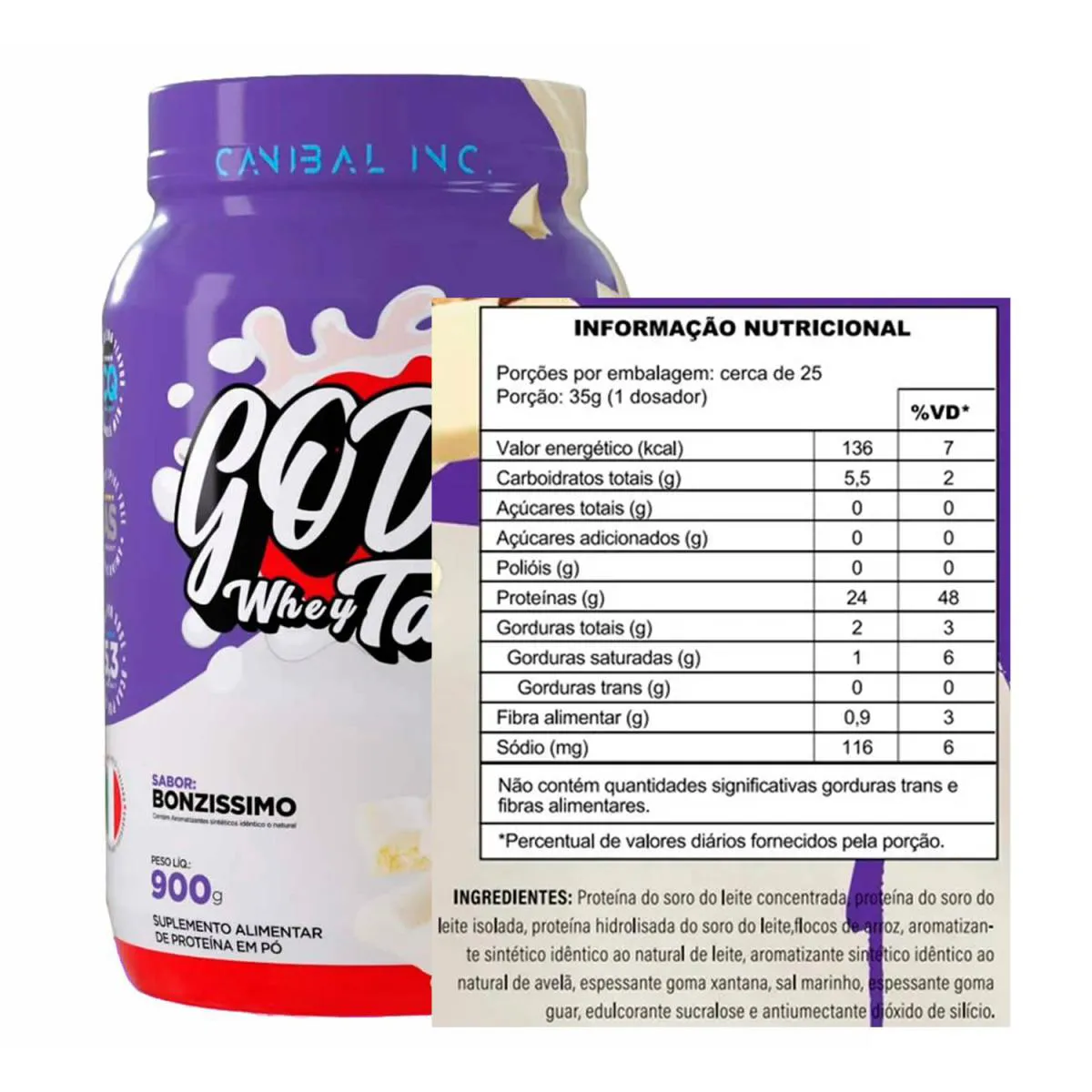 O Whey Protein 3W Gods Whey Bonzíssimo Canibal Inc 900g une performance e sabor em um único suplemento. Desenvolvido com proteínas concentrada, isolada e hidrolisada, proporciona diferentes tempos de absorção, auxiliando desde a recuperação imediata até o suporte prolongado da massa muscular. Com sabor exclusivo Bonzíssimo, entrega cremosidade e prazer no consumo. Ideal para pré e pós-treino, ou em qualquer momento do dia para complementar a dieta.
