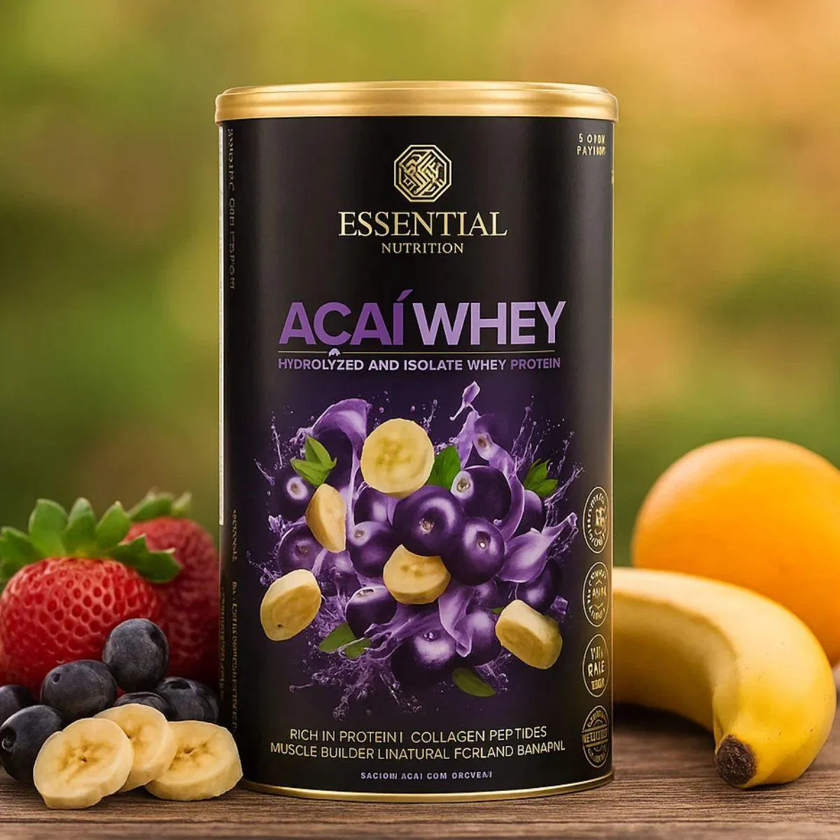 whey protein Açaí da Essential Nutrition reúne proteínas de soro de leite de alta qualidade com o sabor e a cor do açaí em um suplemento cremoso em pó. O pote de 420 g oferece uma combinação nutritiva e prática, alinhada à nutrição funcional.