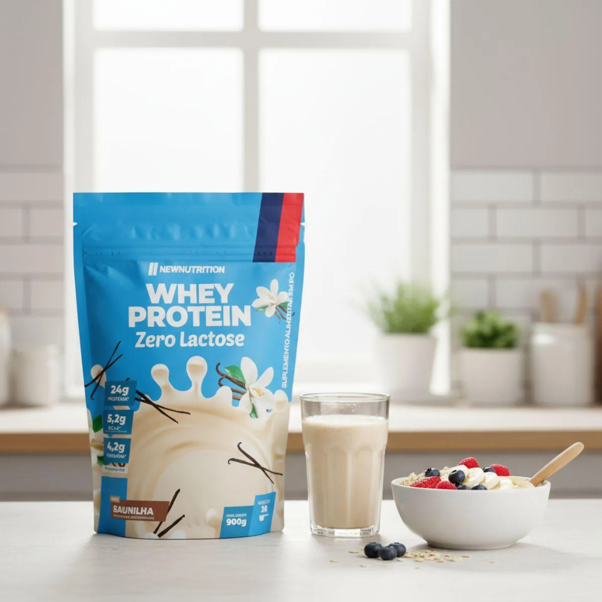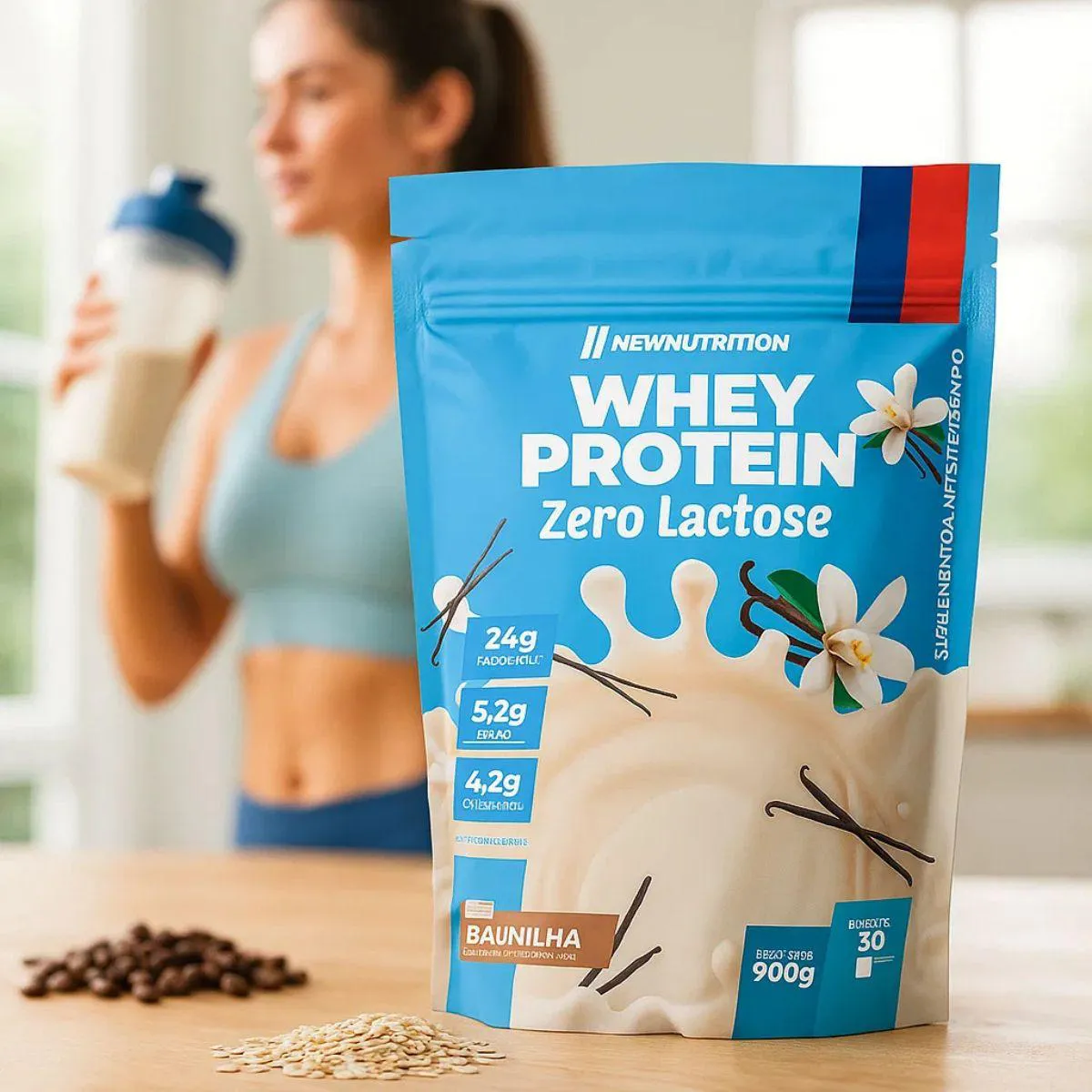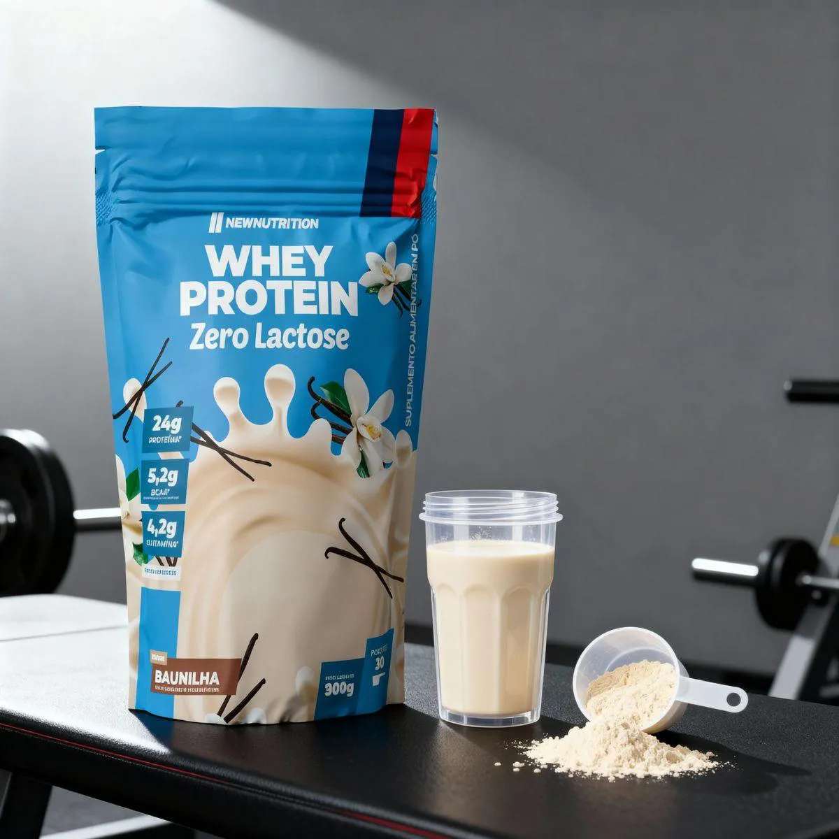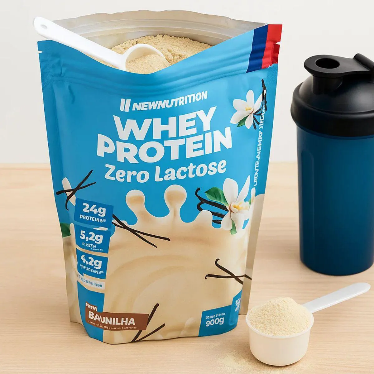 whey protein All Natural Zero Lactose 900g New Nutrition versão all natural do whey protein sem lactose, embalagem de 900 g, com sabor neutro.
