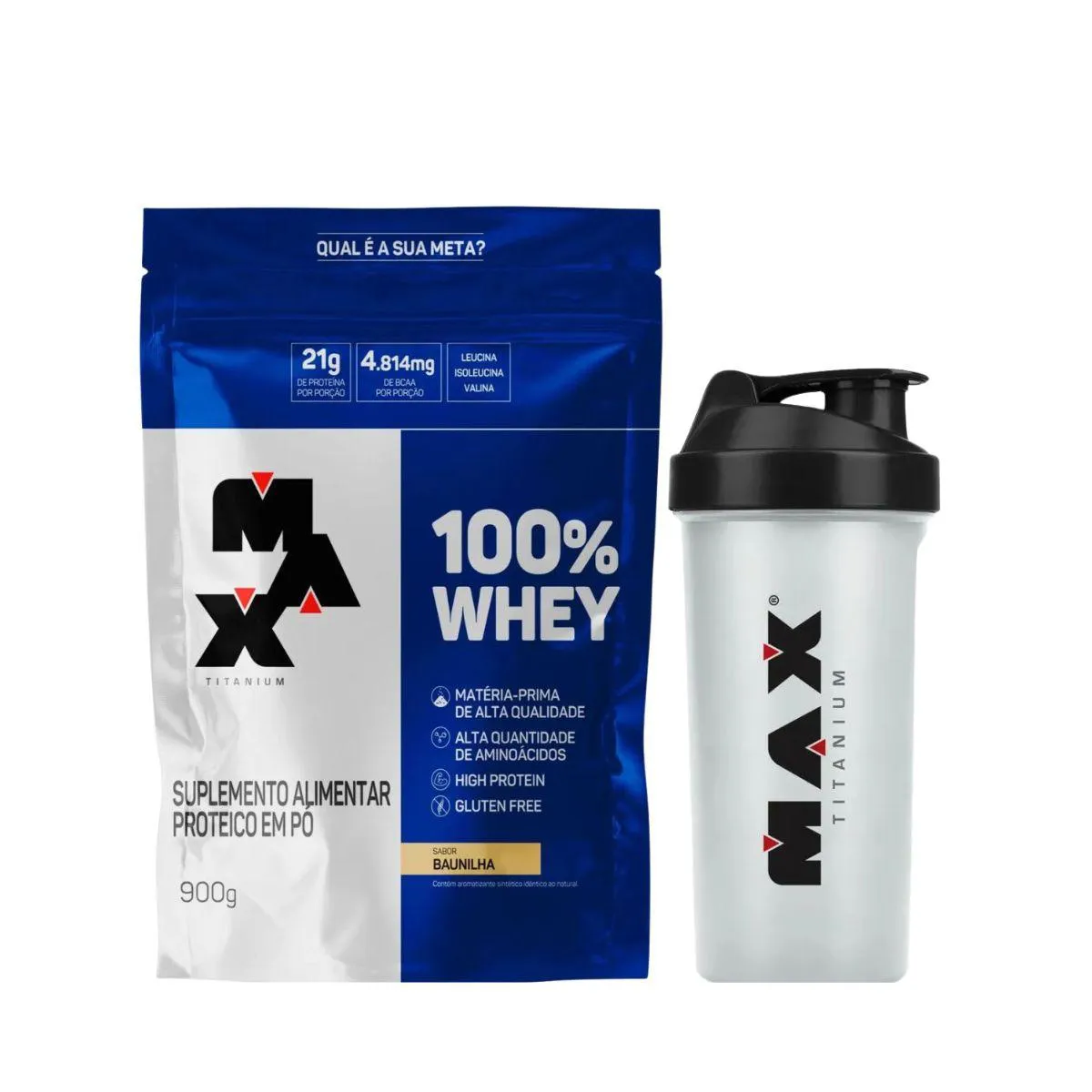 corpo e da mente com simplicidade e estilo. O uso é fácil e rápido. Basta adicionar uma medida de whey protein concentrado 21g de proteína na coqueteleira 700ml, completar com água ou bebida de sua preferência e agitar até obter uma mistura homogênea. Pode ser preparado antes ou após os treinos, ou ainda como complemento entre refeições, garantindo praticidade e conveniência em qualquer momento. Entre as características técnicas, o kit inclui whey protein concentrado sabor baunilha em embalagem de 900g e uma coqueteleira 700ml leve, durável e portátil, ideal para levar para a academia, trabalho ou viagens. Um conjunto pensado para quem busca sabor, leveza e bem-estar com facilidade no dia a dia. Aproveite o preço especial, pois o estoque é limitado e restam poucas unidades. Garanta o seu agora e leve para casa o Mix Whey Protein Concentrado Baunilha 900g com coqueteleira 700ml Max Titanium.