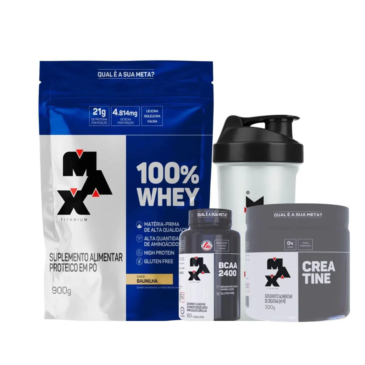 O Mix Whey Protein Concentrado Baunilha com creatina, bcaa e coqueteleira 700ml Max Titanium foi desenvolvido para quem busca praticidade, sabor e qualidade em um único conjunto completo. Ele combina um suplemento versátil com um acessório funcional, facilitando o preparo e o consumo em qualquer momento do dia. Ideal para quem valoriza leveza, conveniência e uma rotina mais organizada sem abrir mão do prazer ao consumir whey protein concentrado 21g de proteína. Este produto selecionado reúne um blend especial de whey protein concentrado sabor baunilha, creatina e bcaa, oferecendo uma experiência equilibrada com textura agradável e boa dissolução. A coqueteleira 700ml que acompanha o kit é resistente, possui tampa segura e sistema de mistura eficiente, reforçando a autoridade de uma marca reconhecida pela qualidade e atenção aos detalhes. É uma combinação pensada para quem ama cuidar do