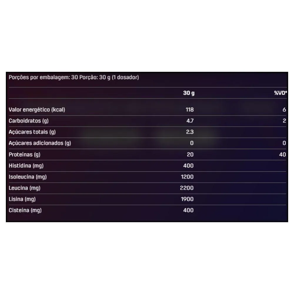 - Alta qualidade proteica: 100% whey concentrado, rico em aminoácidos essenciais para a síntese do corpo.