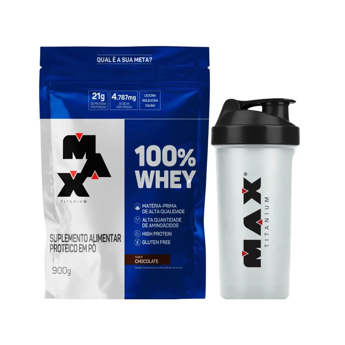 corpo e da mente sem abrir mão da praticidade. A forma de uso é simples e adaptável ao seu ritmo. Basta adicionar uma medida de whey proteína concentrado 21g de proteína na coqueteleira 700ml, completar com água ou bebida de sua preferência e agitar até obter uma mistura homogênea. Pode ser consumido antes ou após os treinos ou como complemento entre refeições, garantindo facilidade em qualquer momento do dia. Características técnicas incluem um refil de 900g de whey proteína concentrado sabor chocolate com cerca de 21g de proteína por dose, além de uma coqueteleira 700ml resistente, leve e fácil de transportar. Um kit completo para quem busca organização, sabor e funcionalidade em sua rotina. Garanta o seu Mix Whey Proteína Concentrado Chocolate 900g com coqueteleira 700ml Max Titanium. Aproveite o preço especial enquanto o estoque é limitado e as últimas unidades estão disponíveis.