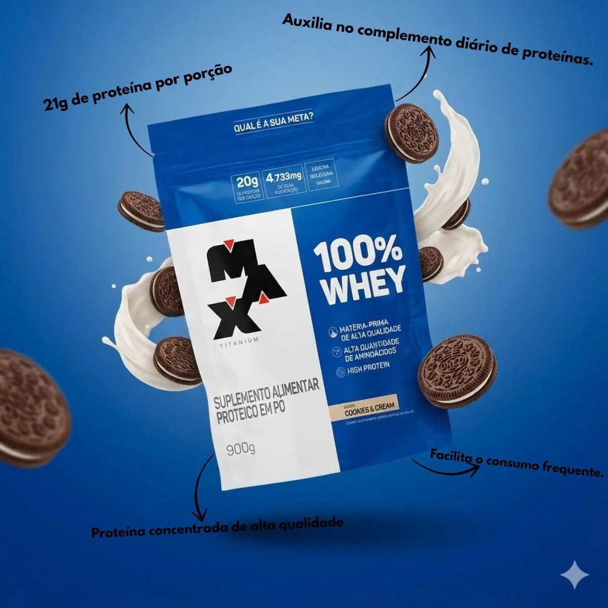 O que é e para que serve o whey protein Concentrado Cookies & Cream 900G Mix + Coqueteleira 700Ml Max Titanium?