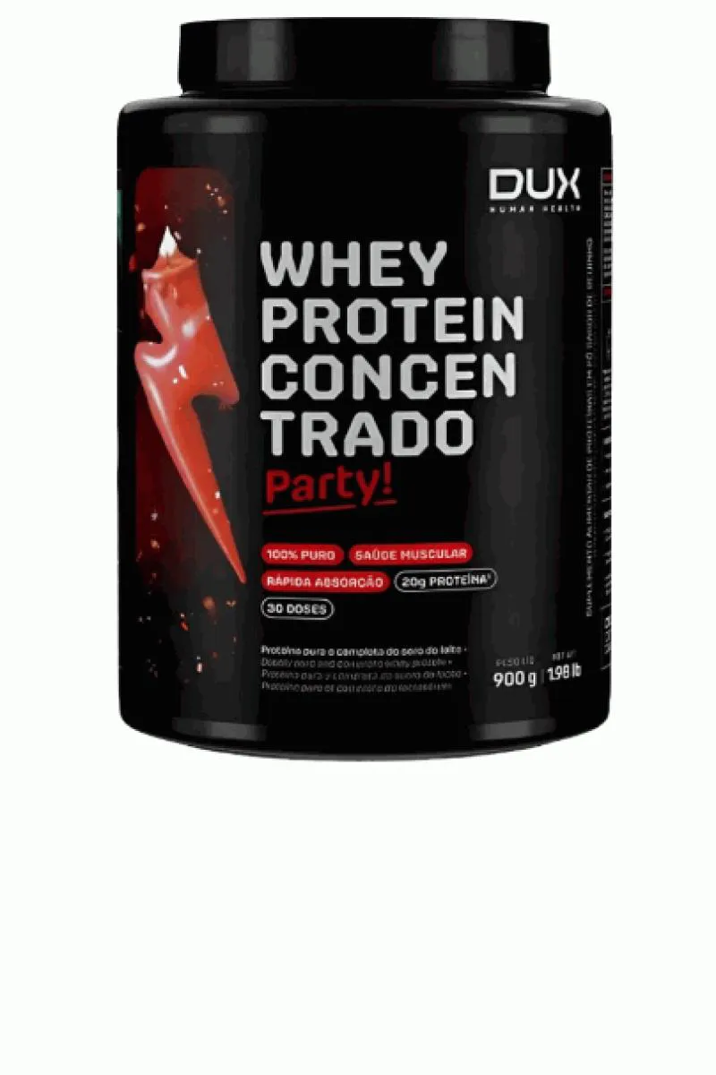 whey protein CONCENTRADO (900g) - DUX NUTRITION O Whey Protein Concentrado Dux Nutriton é composto por proteínas de alto valor biológico e rápida absorção, além de gorduras essenciais, carboidratos e uma ampla gama de aminoácidos, fundamentais para garantir a síntese muscular acelerada após a prática de esportes. É ideal para ser consumido antes e depois de treinos, mas também pode fazer parte do café da manhã ou servir como um lanche entre as refeições, e em outros momentos conforme a orientação do seu nutricionista. Se há um nutriente indispensável, é a proteína. Ela é feita de aminoácidos, que são os blocos de construção do nosso corpo. A proteína do soro do leite, em inglês “Whey Protein”, é uma das fontes de aminoácidos de melhor absorção, maior até que o frango ou peixe. Isso torna o Whey uma forma conveniente de ingerir proteína, melhorando a saúde, o bem-estar e os resultados dos treinos. BENEFÍCIOS: * Não contém goma xantana, complexos vitamínicos à base de maltodextrina, espessantes, estabilizantes, conservantes ou qualquer outro ingrediente inferior;* Contém corantes 100% naturais, sem ingredientes artificiais;* O nome diz tudo: Whey Protein Concentrado 100% puro, com transparência total, do nome do produto à lista de ingredientes;* Matéria-prima premium importada, com alto teor de leucina, desenvolvida para criar um produto com sabor real e marcante;* Valores nutricionais robustos, sem excessos, com quantidades ideais de carboidratos e gorduras do leite;* 20g de proteína;* Proteína moderna, desenvolvida por especialistas para atletas de esportes de performance (bodybuilding, crossfit e artes marciais), pessoas que buscam uma proteína com baixa caloria (para snacks fit e receitas sem culpa) e pessoas que buscam uma proteína ultrapura de altíssima qualidade.