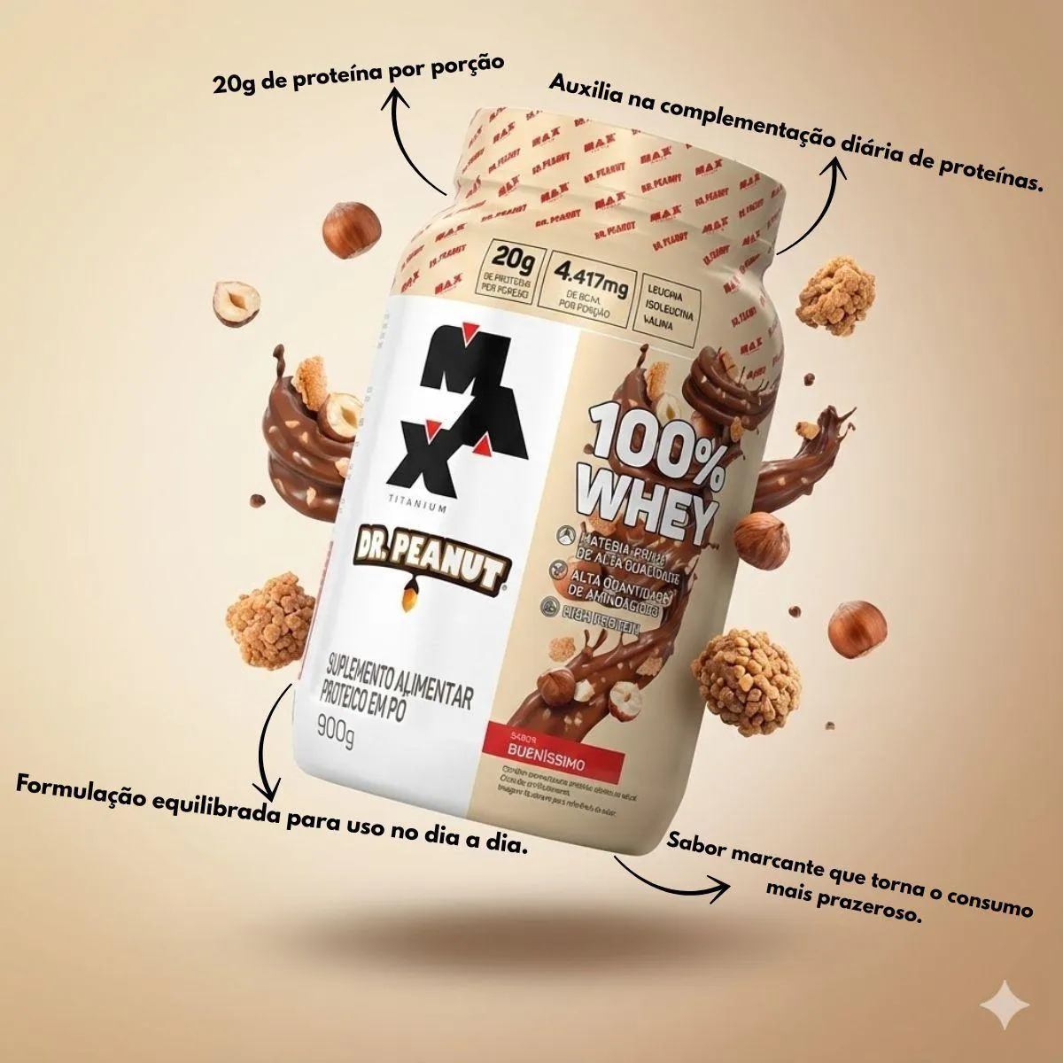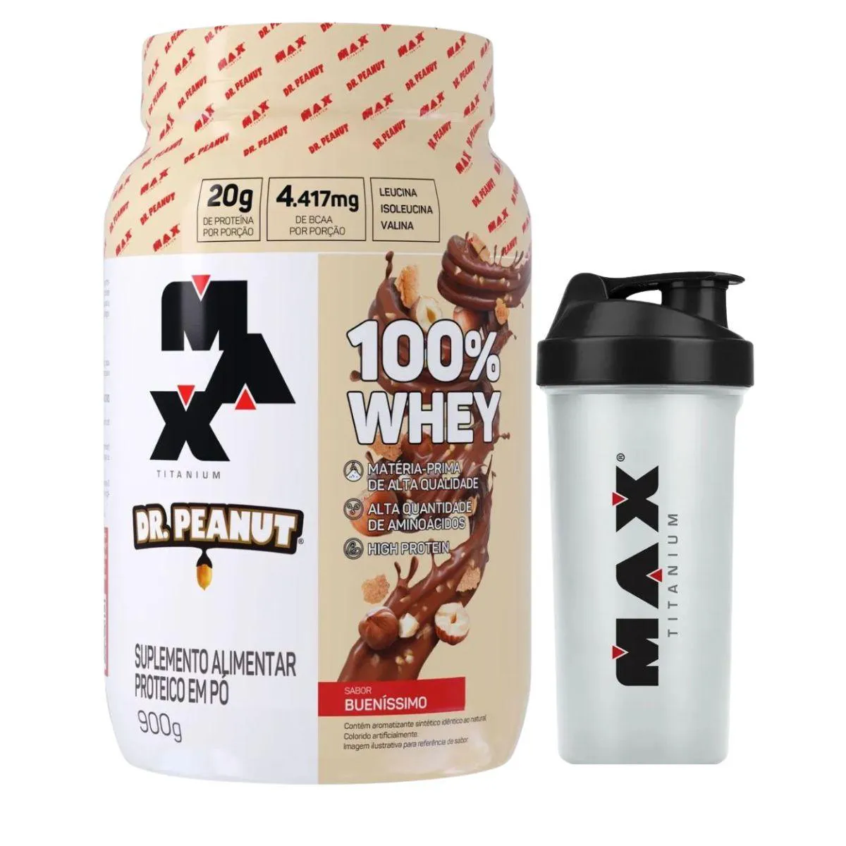 MIX whey protein DR PEANUT BUENÍSSIMO 20G DE PROTEÍNA 900G + COQUETELEIRA 700ML MAX