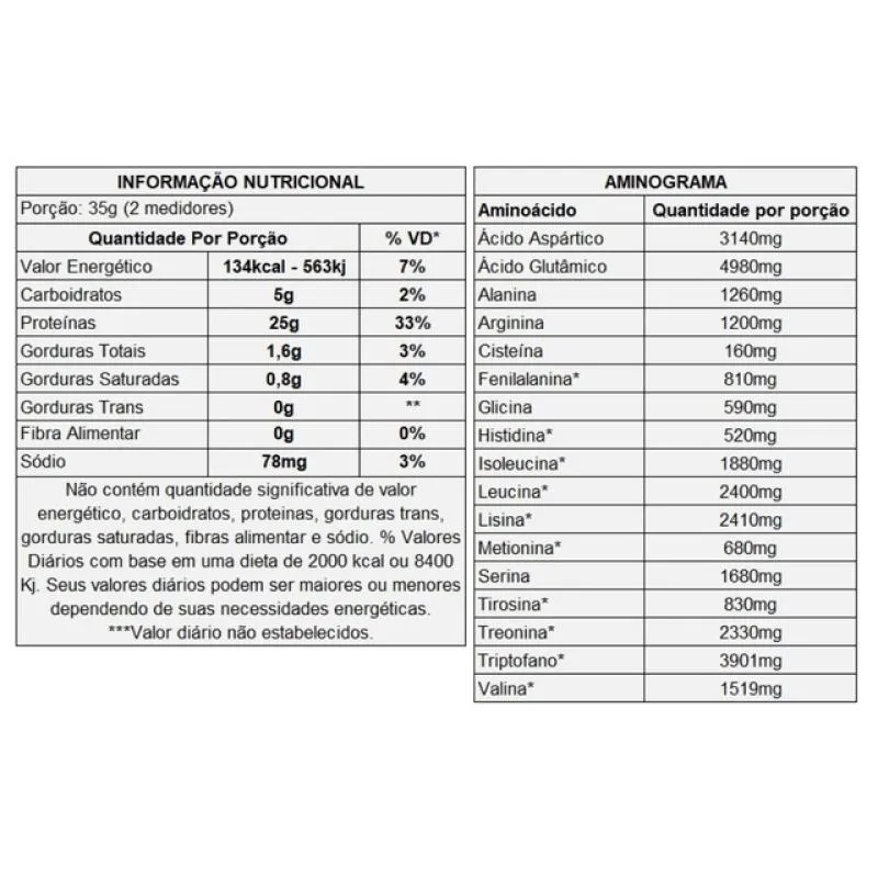 - Rico em aminoácidos essenciais e BCAA.
