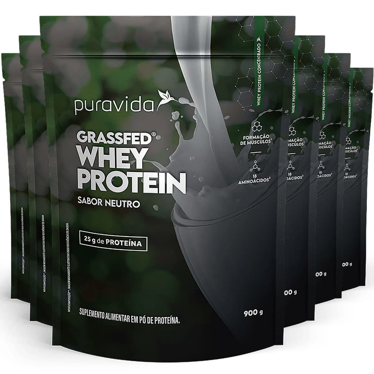Whey Protein Grassfed Sabor Neutro 6 X 900G Puravida