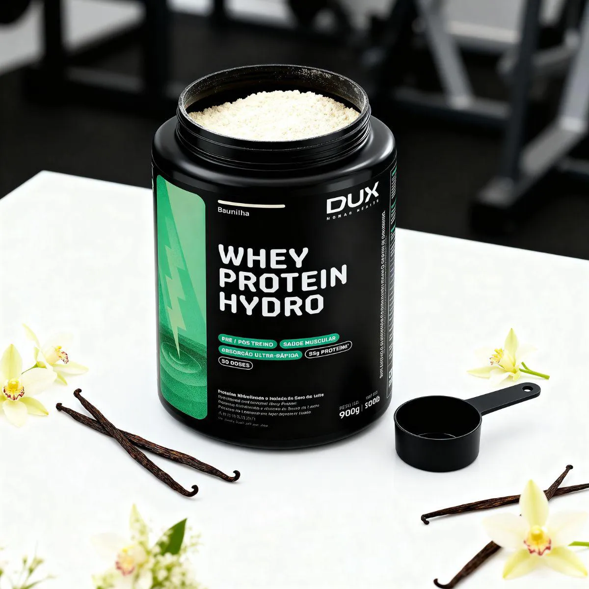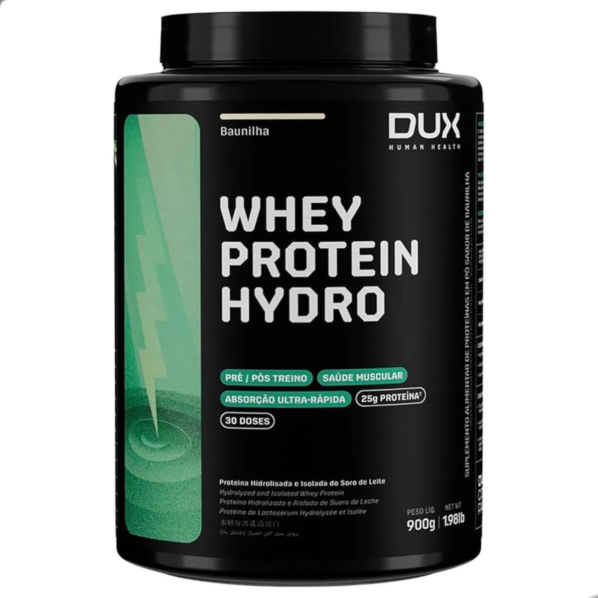 O whey protein Hydro da Dux é um suplemento composto por proteína hidrolisada do soro, que passa por processo de pré‑digestão enzimática para facilitar a absorção. Cada dose de 30 g contém cerca de 25 g de proteína e perfil completo de aminoácidos essenciais, com baixo teor de lactose, carboidratos e gorduras.