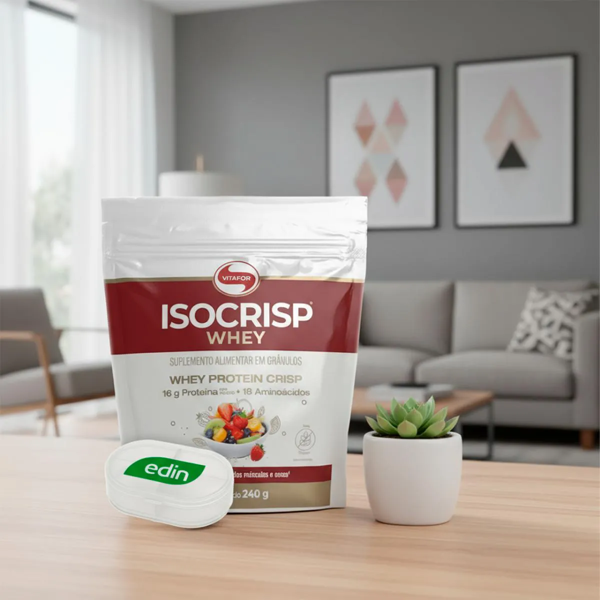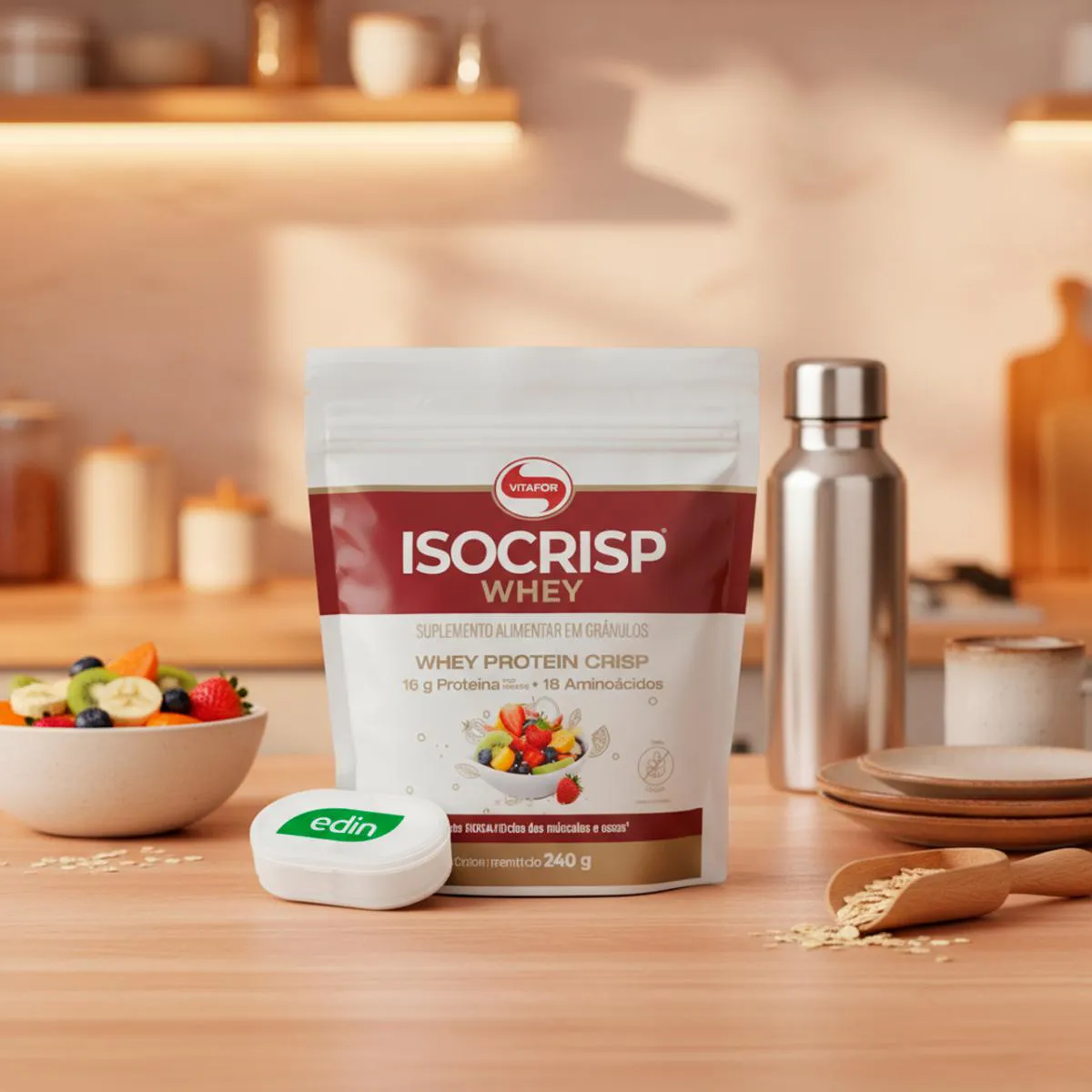 whey protein Isocrisp Vitafor 240g Neutro + Porta Cápsulas