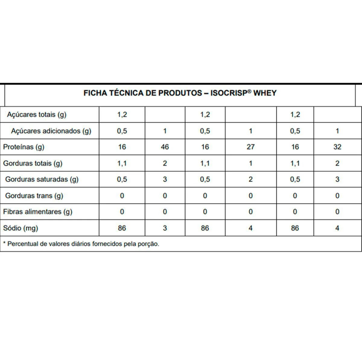 base de Whey Protein Isolate e Whey Protein Concentrate (proteína de soro do leite isolada e