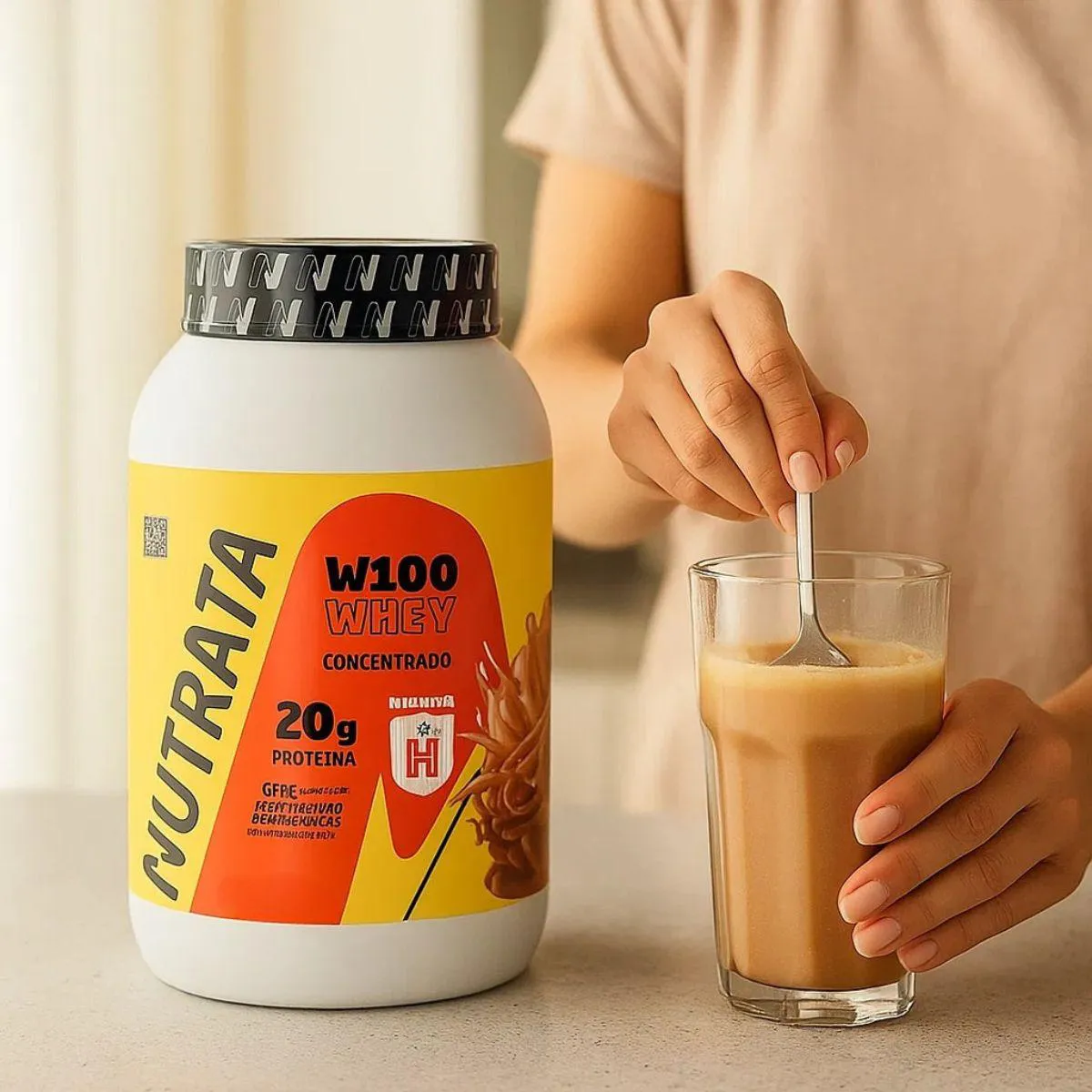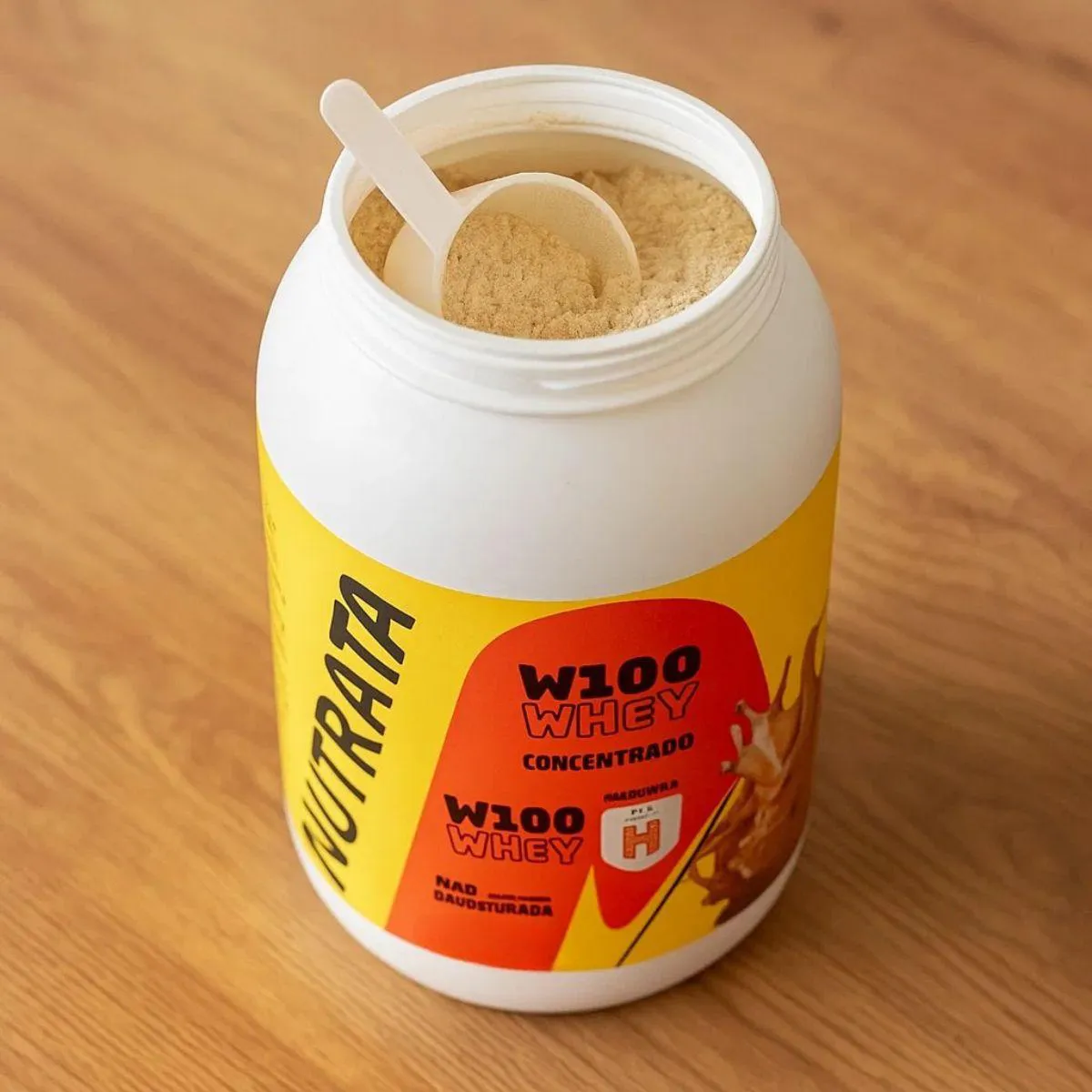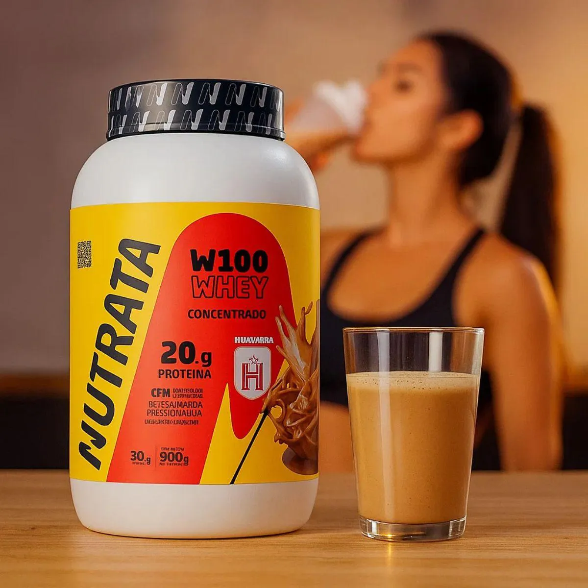 whey protein W100 Concentrado Havanna Pote 900g Nutrata whey protein W100 concentrado com sabor Havanna, pote de 900 g.